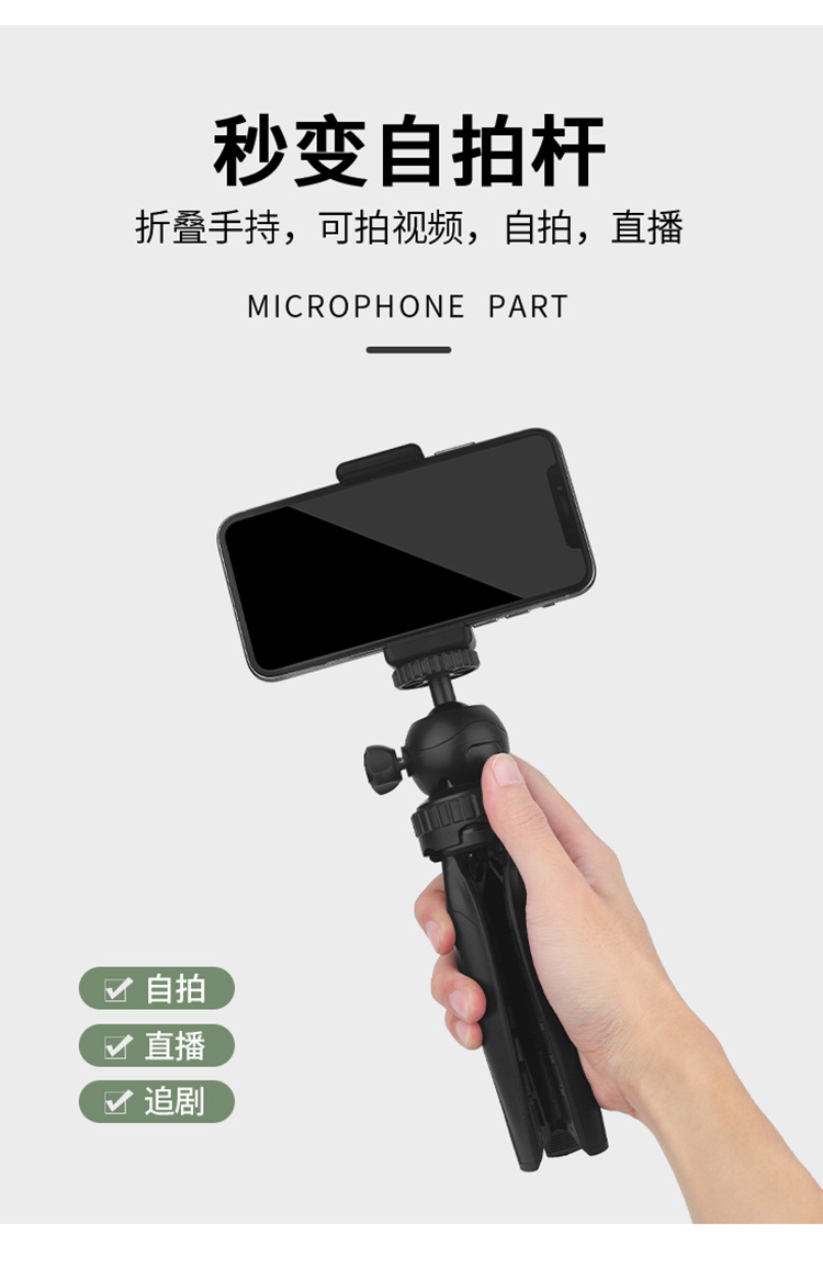 휴대 전화 라이브 데스크탑 스탠드 범용 지원 클립베이스 접이식 휴대용 핸드 헬드 삼각대 마이크로 싱글 프로젝터