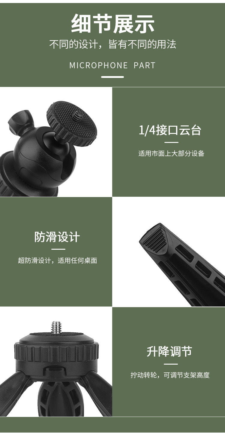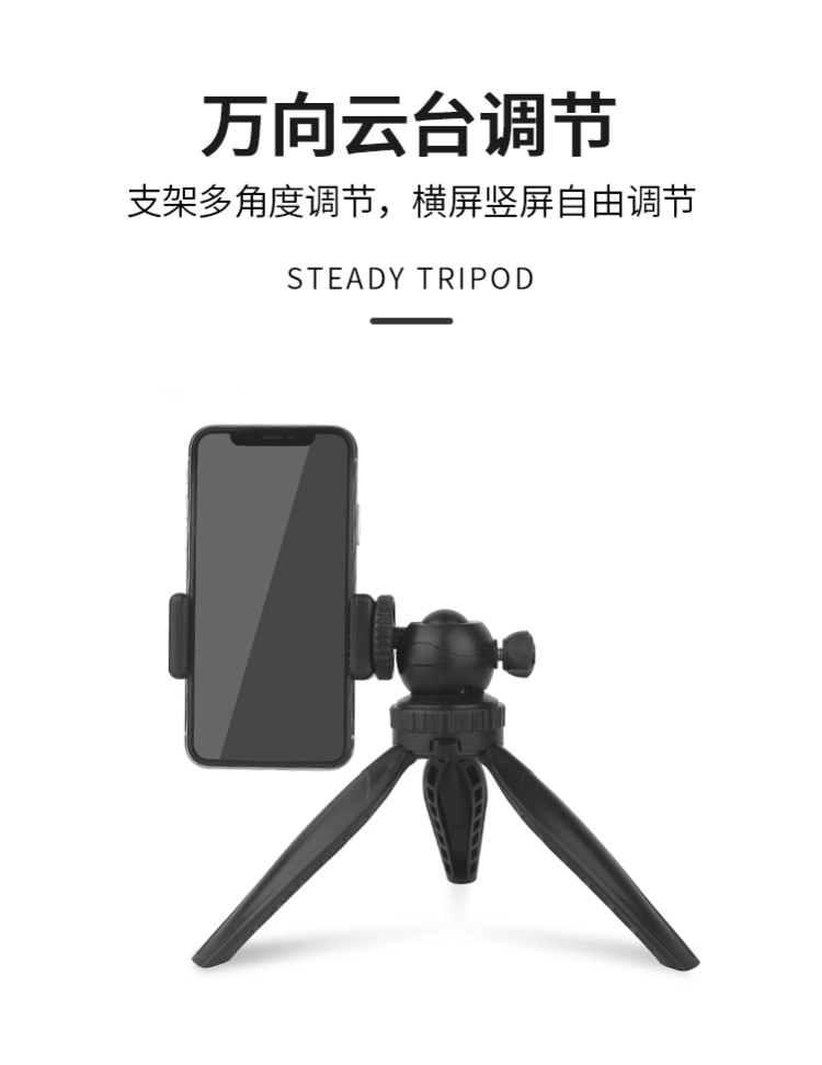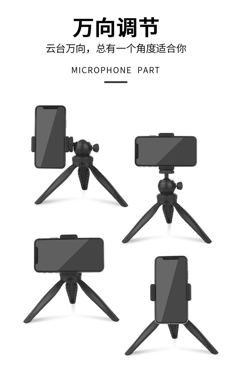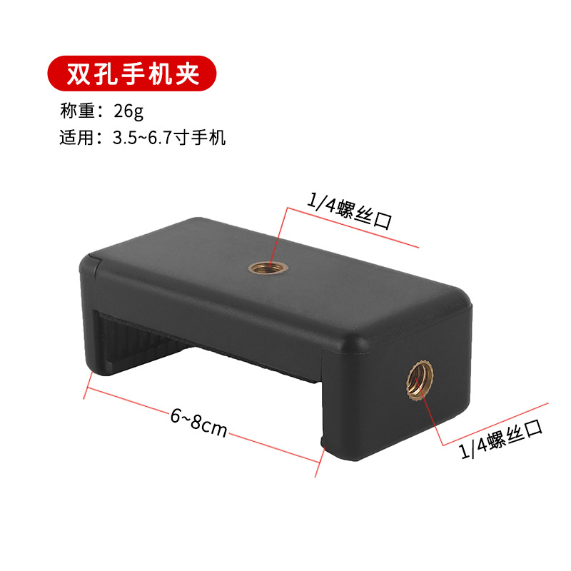 • 회전 삼각대 헤드 + 이중 구멍 휴대폰 클립