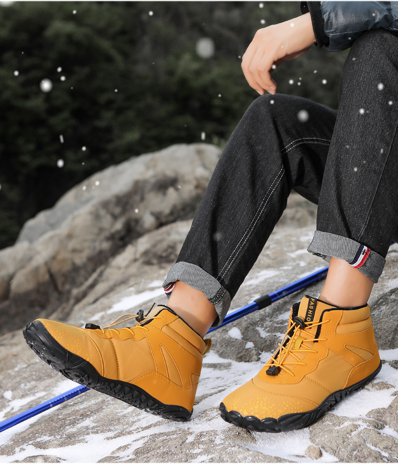 야외 면 신발 따뜻한 미끄럼 방지 하이탑 신발 남성과 여성의 하이킹 등산 울 기모 방한 방풍 다섯 손가락 면 부츠