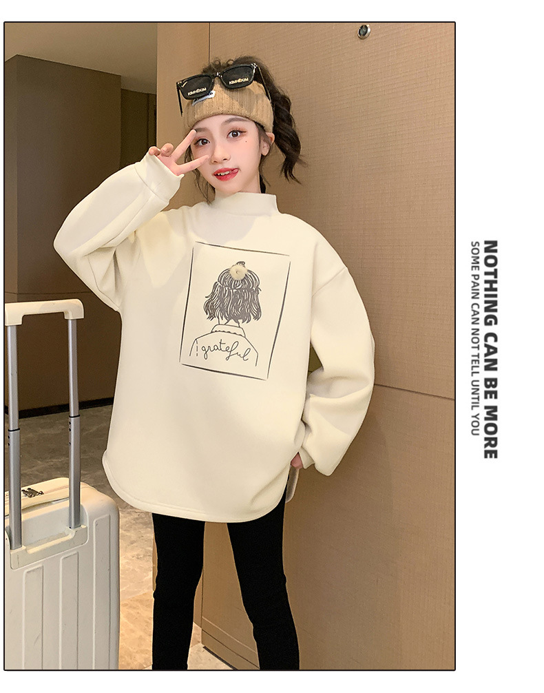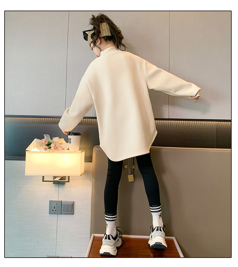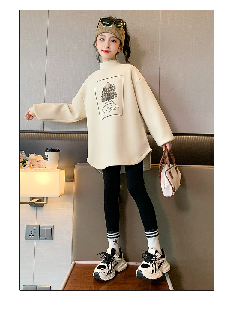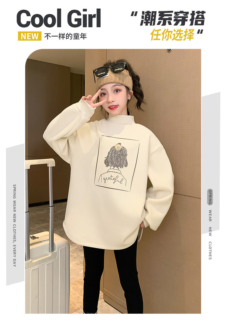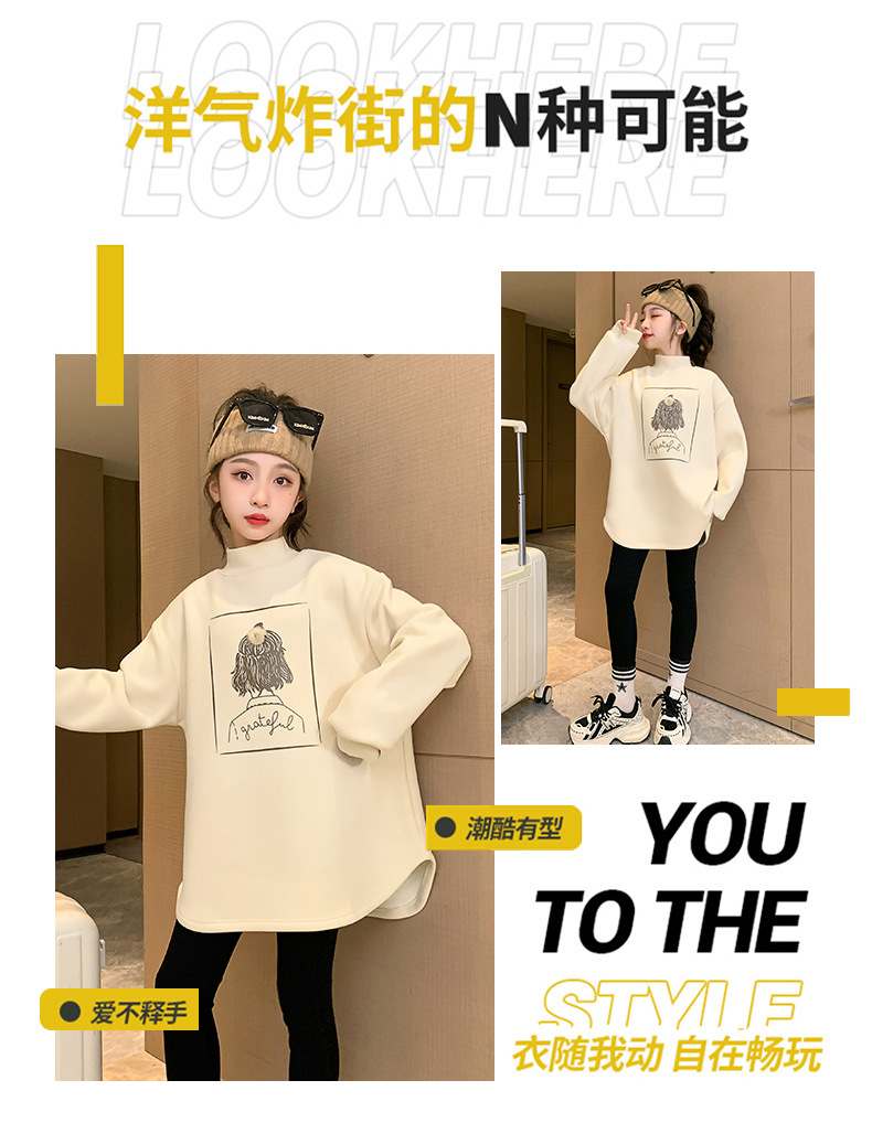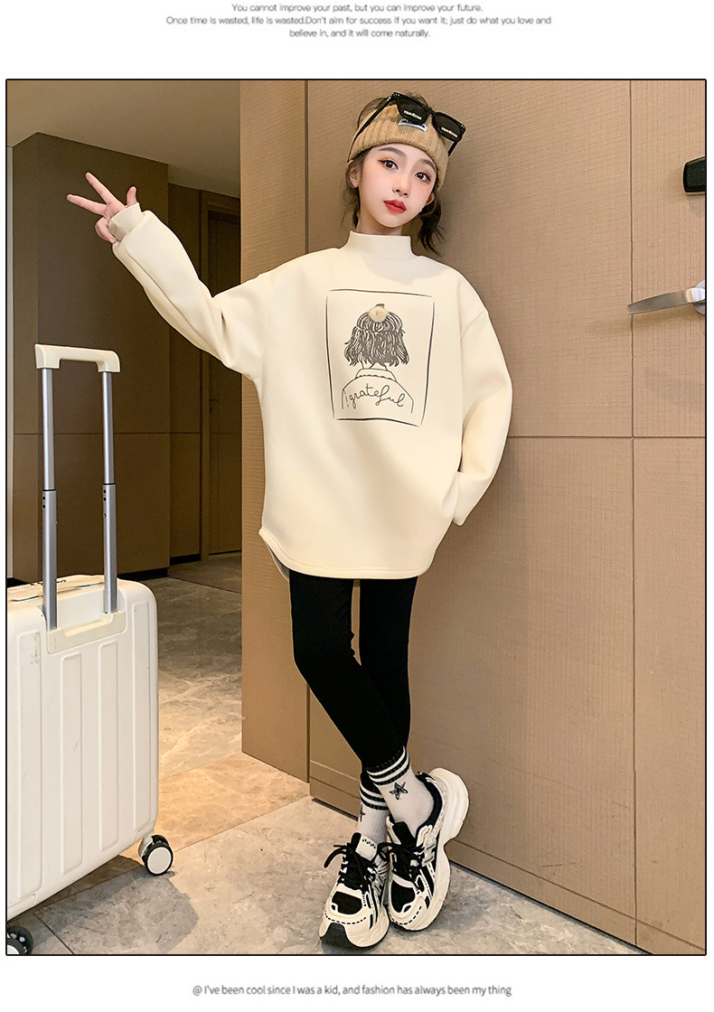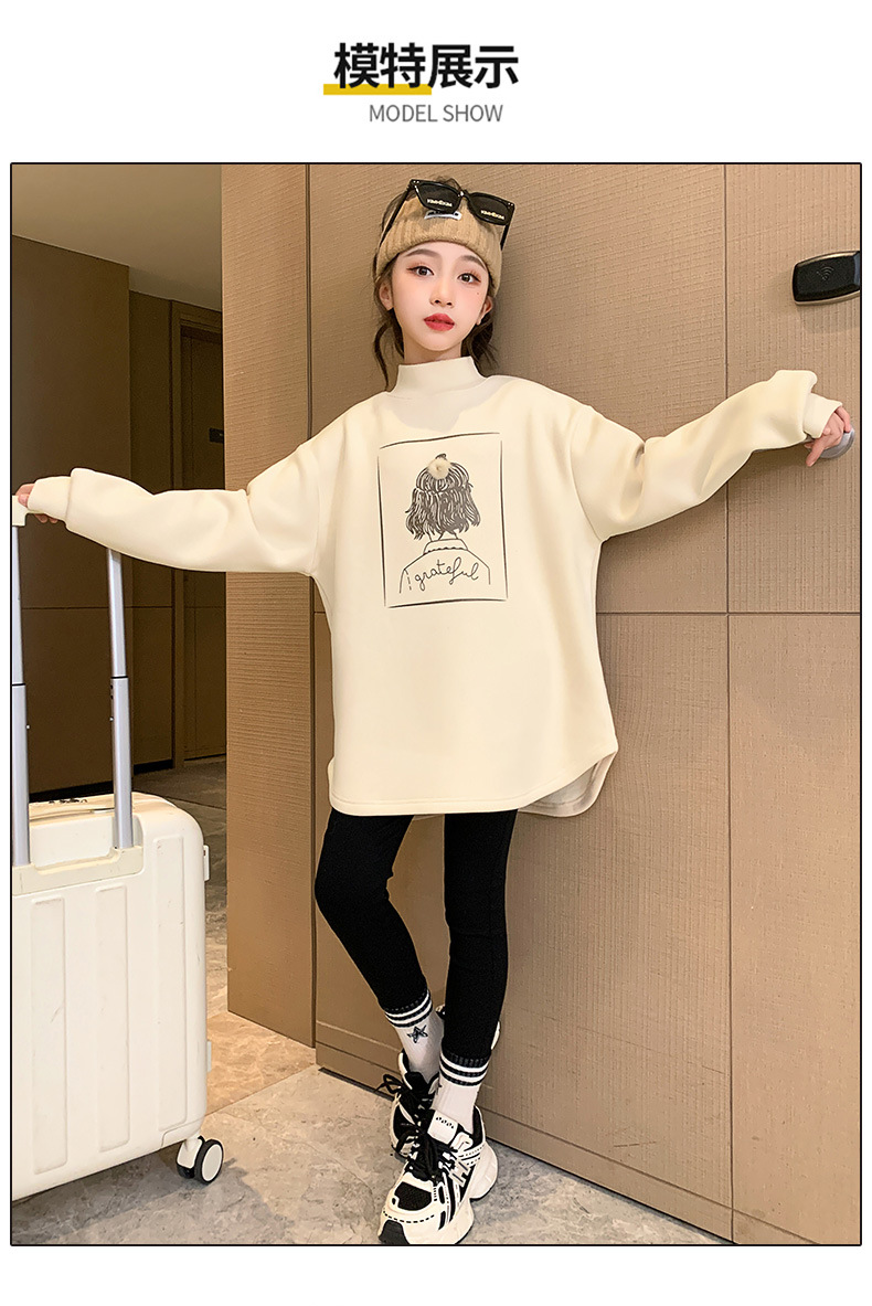 여아 두꺼운 원피스 벨벳 스웨터 2023 새로운 가을 겨울 중대형 아동용 기모 중간 길이 세미 하이 칼라 베이스 셔츠스토어 가기
