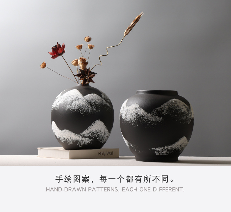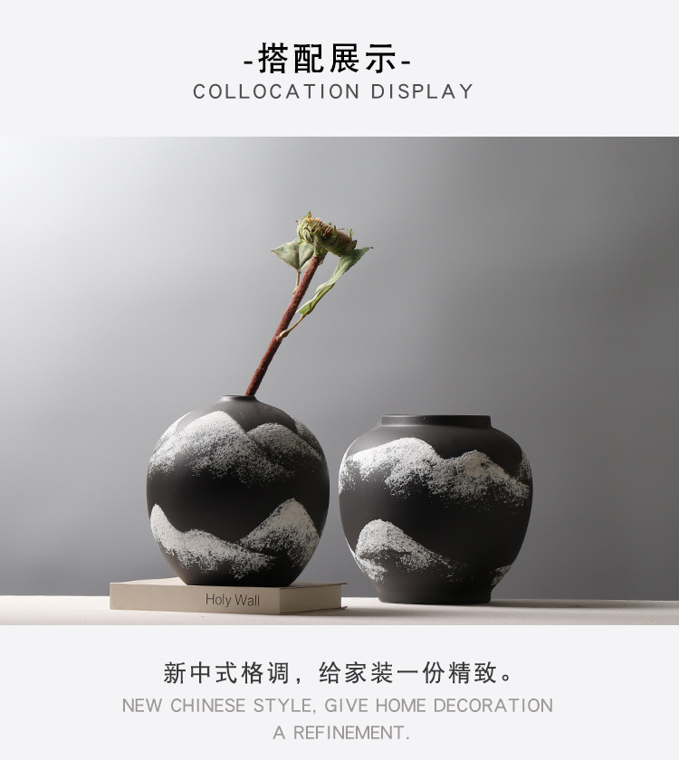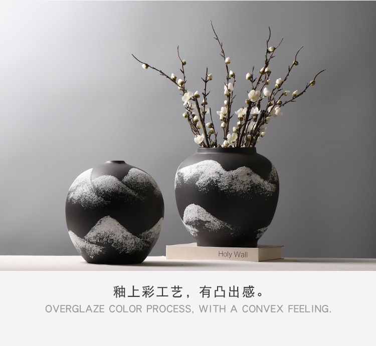 새로운 중국 창조적 인 산 패턴 장식 꽃병 모델 방 연구 꽃꽂이 골동품 선반 세라믹 장식품스토어 가기