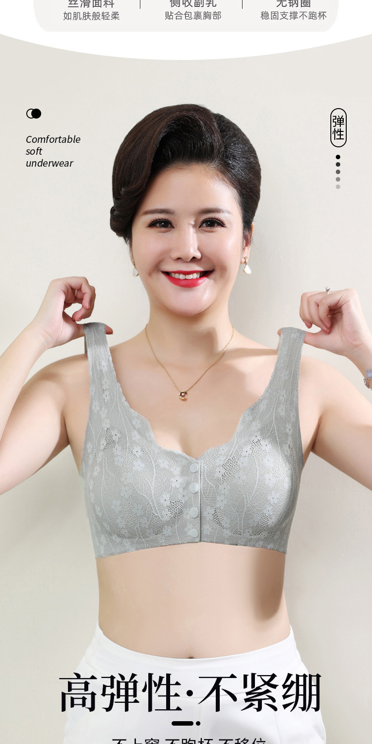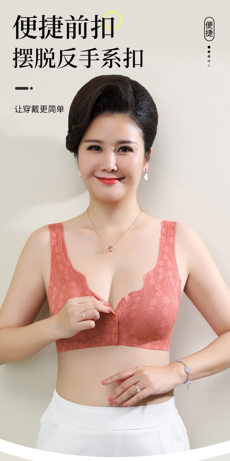 플러스 사이즈 어머니의 앞 단추 속옷 푸시 업 안티 처짐 및 심리스 브래지어 중년 및 노인 여성용 브래지어