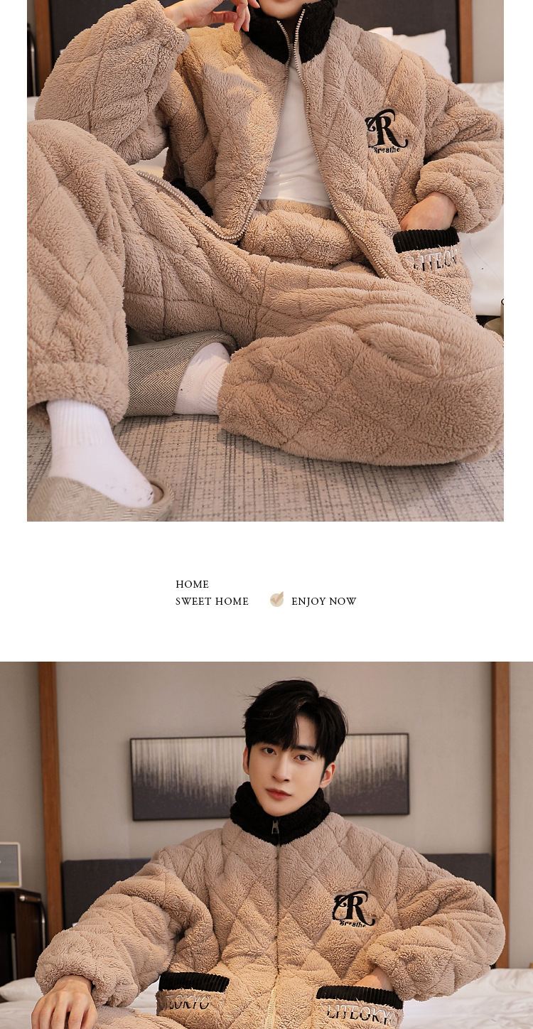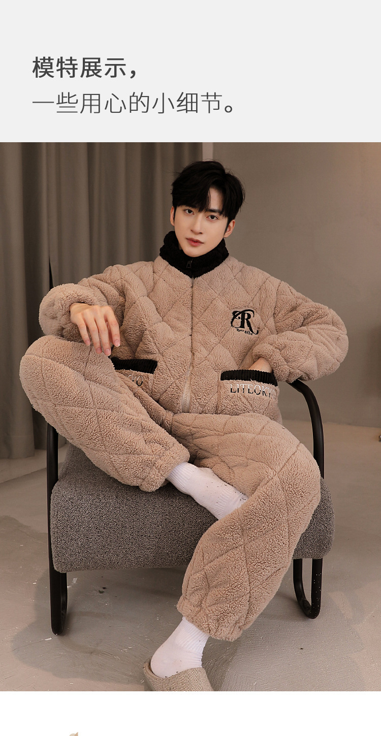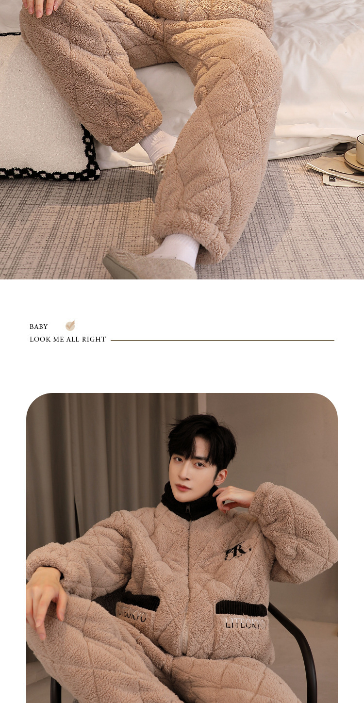 카디건 플란넬 3 층 퀼트 가을과 겨울 남성 잠옷 높은 칼라 두꺼운 따뜻한 겉옷 착용 가정용 세트 머리스토어 가기