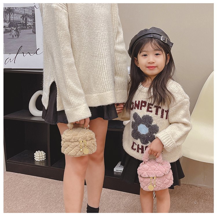 새로운 여자 공주 어린이 패션 어깨 크로스 바디 작은 가방 세련된 여성의 부모-자식 봉제 미니 작은 가방 휴대용