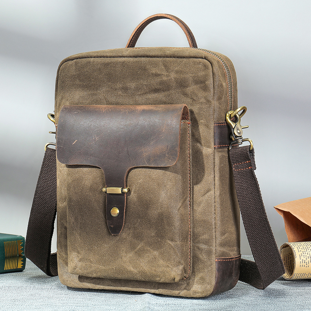 Crazy Horse 가죽 다기능 휴대 전화 가방 야외 스크래치 방지 남성 메신저 가방 패션 도매 남성용 숄더백 캔버스