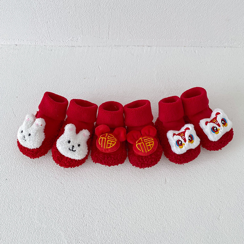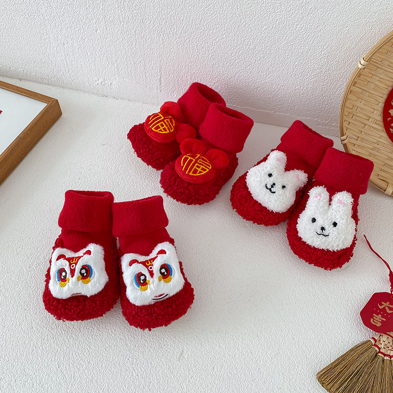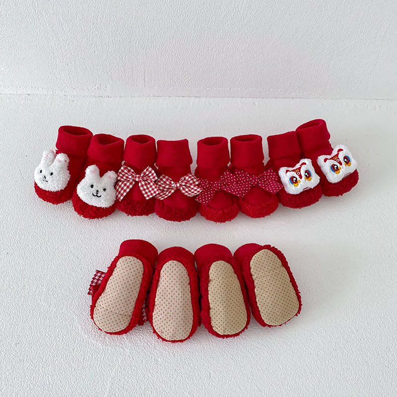 Dianxi 아기 바닥 양말 겨울 빨간 년 신발 및 양말 보름달 아기 유아 신발 신생아 양말 낙하 방지 신발스토어 가기