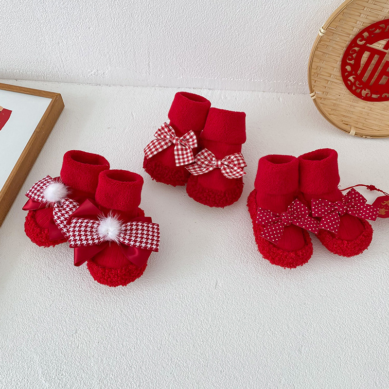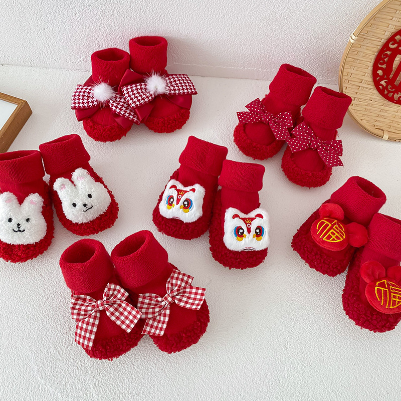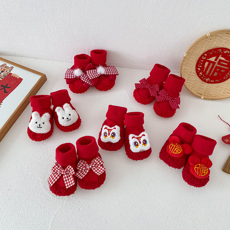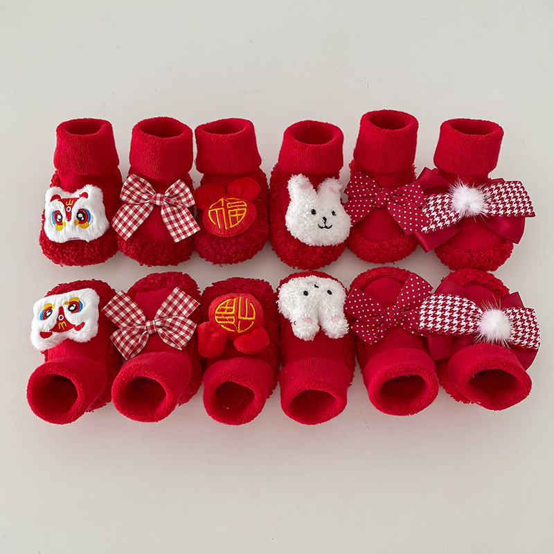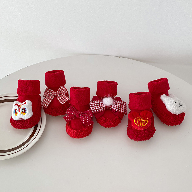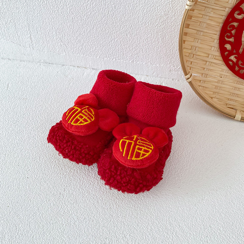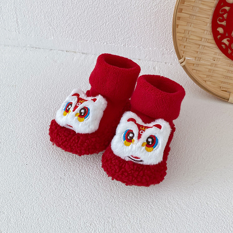 Dianxi 아기 바닥 양말 겨울 빨간 년 신발 및 양말 보름달 아기 유아 신발 신생아 양말 낙하 방지 신발