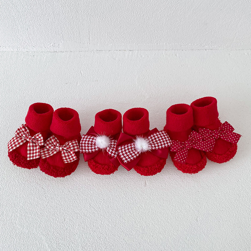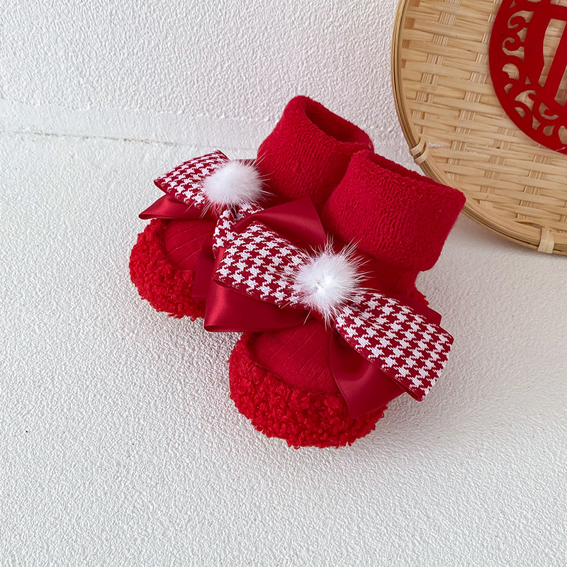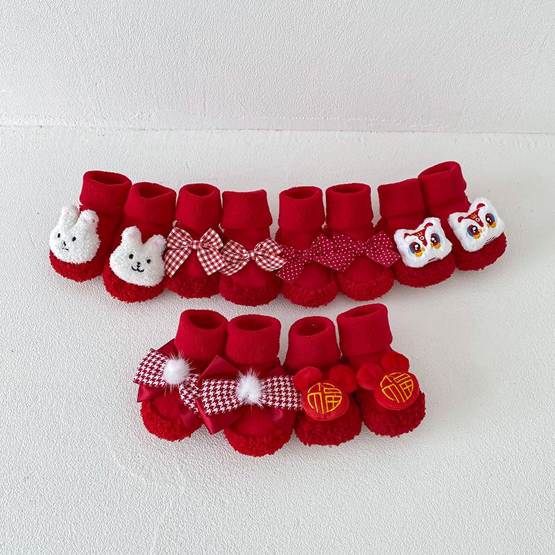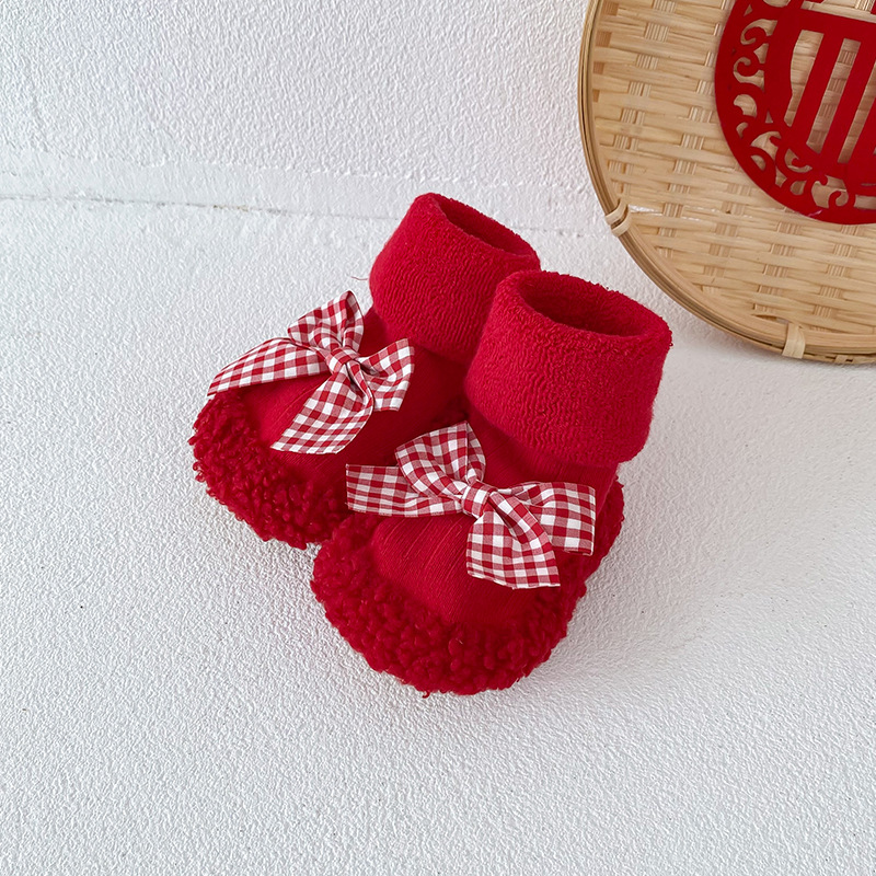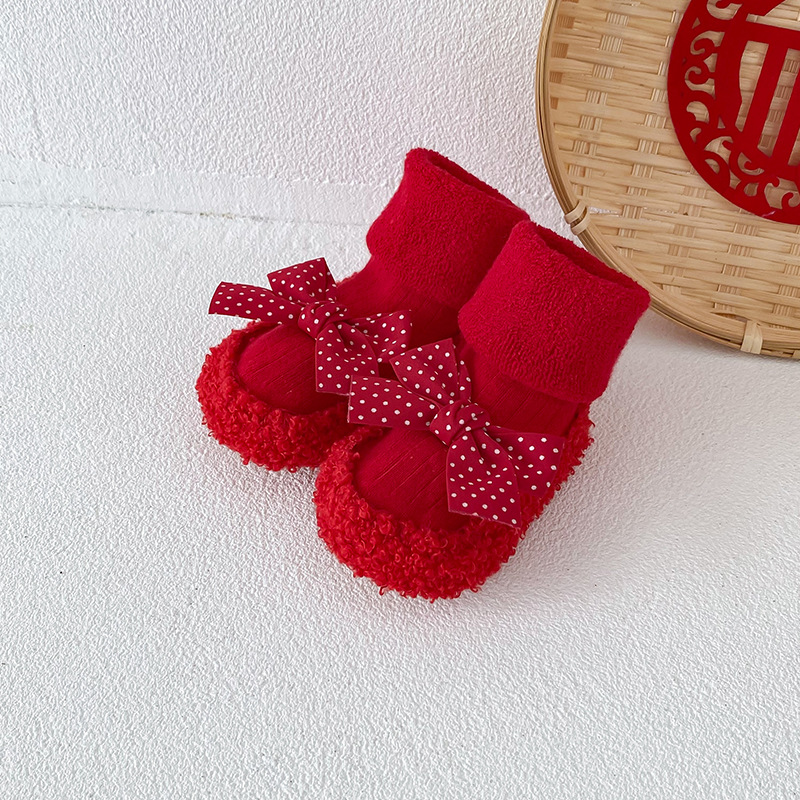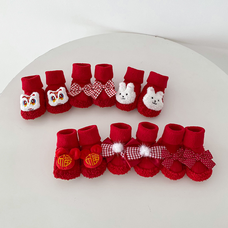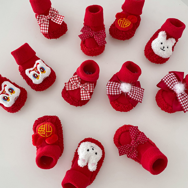 Dianxi 아기 바닥 양말 겨울 빨간 년 신발 및 양말 보름달 아기 유아 신발 신생아 양말 낙하 방지 신발