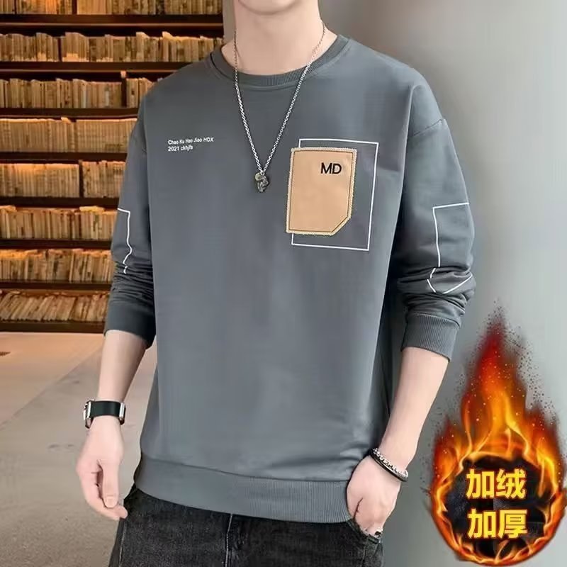 가을과 겨울 새로운 기모 스웨터 남자의 플러스 지방 증가 느슨한 남자의 승무원 목베이스 셔츠 타이드 브랜드 남성 도매스토어 가기