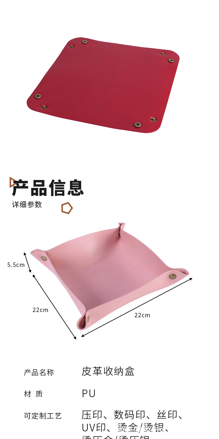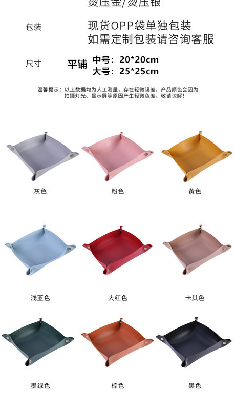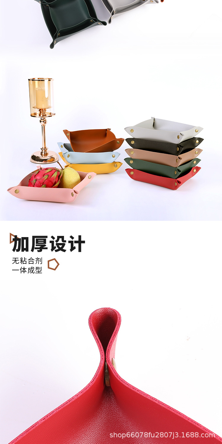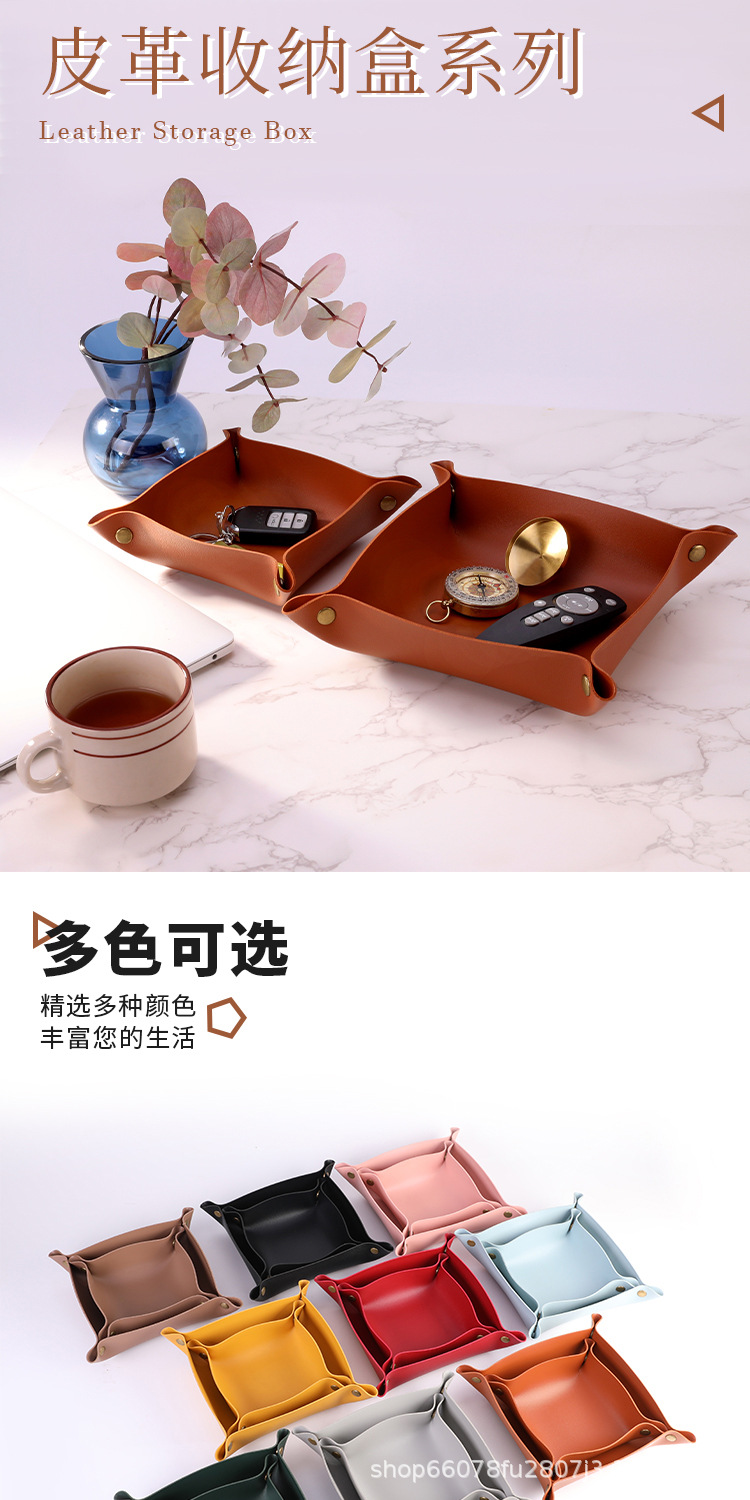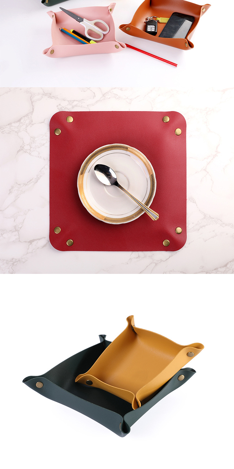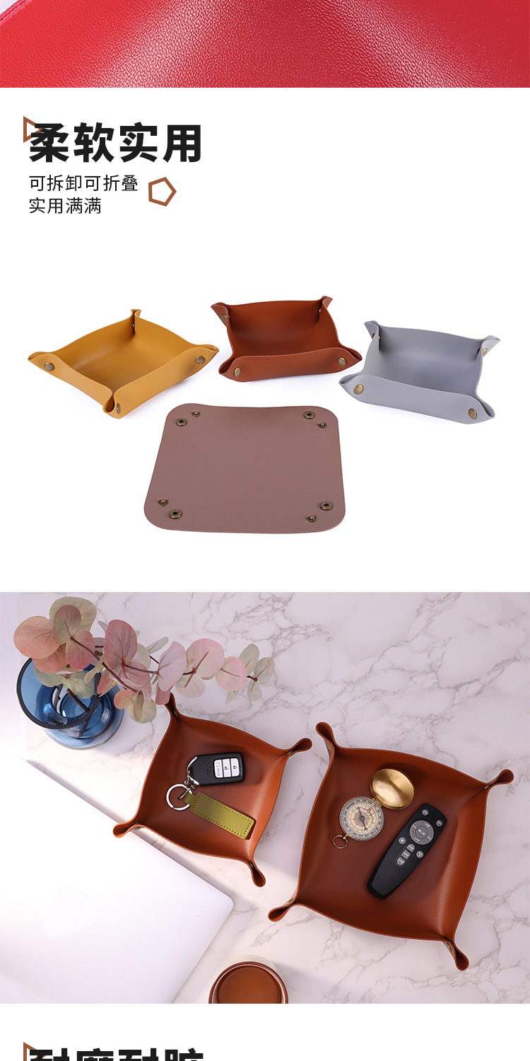 북유럽 가죽 저장 상자 입구 데스크탑 키 저장 트레이 PU 가죽 접이식 4 코너 주사위