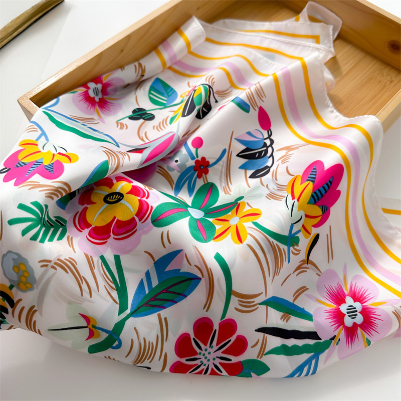 식물 꽃 기하학적 인쇄 새로운 스카프 실크 70 작은 사각 스카프 봄과 가을 모든 매치 스카프 넥타이 머리 스카프 여성