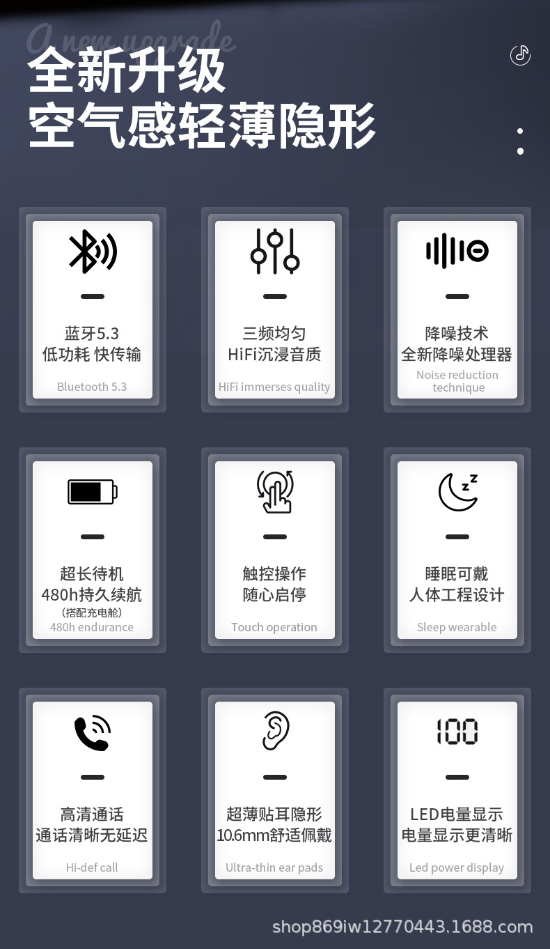 국내 및 해외 폭발 MD538 개인 모델 TWS 수면 초박형 무선 블루투스 헤드셋 전송 수면 소음 감소 제조업체스토어 가기