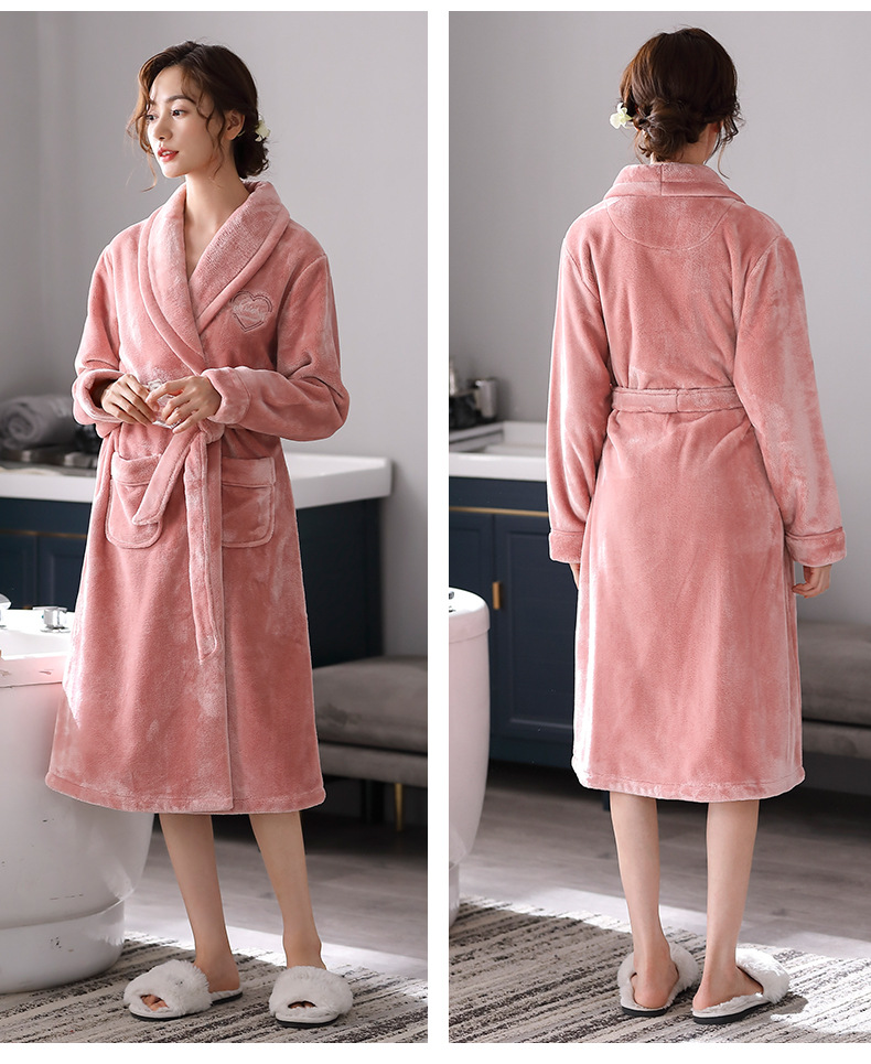 잠옷 여자의 가을과 겨울 산호 양털 기모 두꺼운 목욕 가운 겨울 긴 2023 새로운 플란넬 목욕 가운 아침 가운스토어 가기