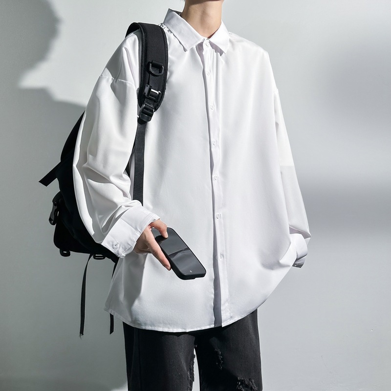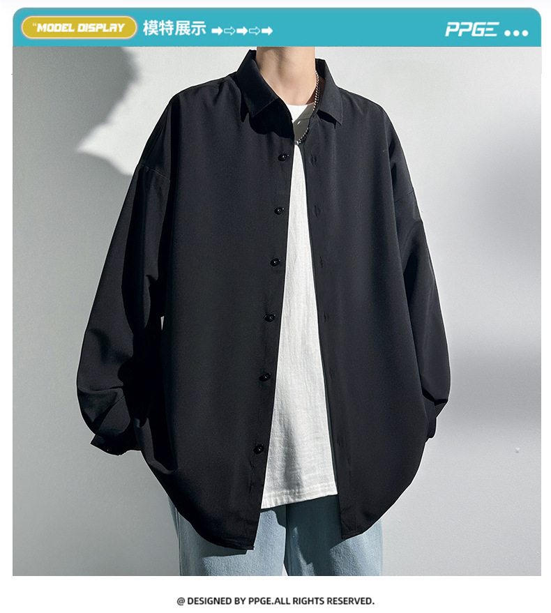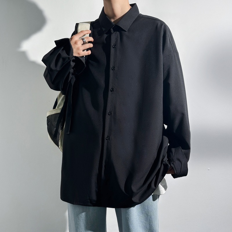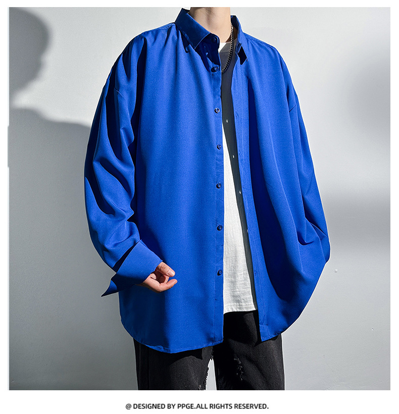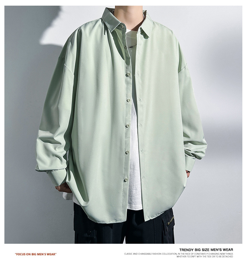 남자의 드레이프 캐주얼 재킷 느슨한 셔츠 남자의 긴 소매 한국 스타일 아이스 실크 더피 잘 생긴 디자인 스트레치 셔츠스토어 가기