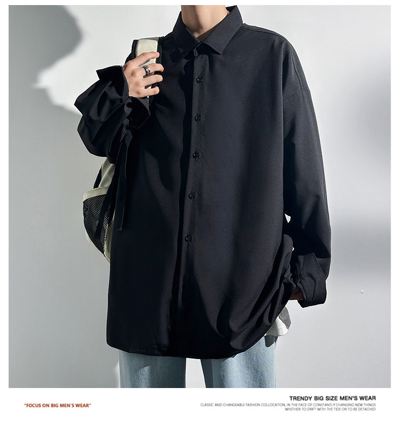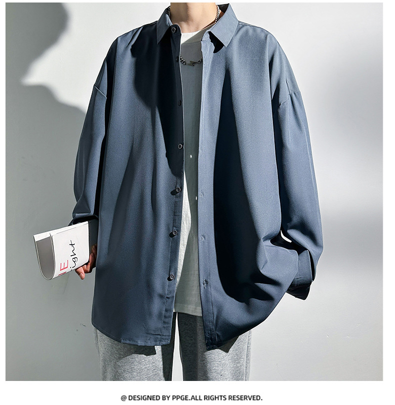 남자의 드레이프 캐주얼 재킷 느슨한 셔츠 남자의 긴 소매 한국 스타일 아이스 실크 더피 잘 생긴 디자인 스트레치 셔츠