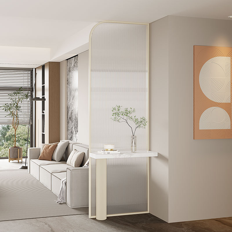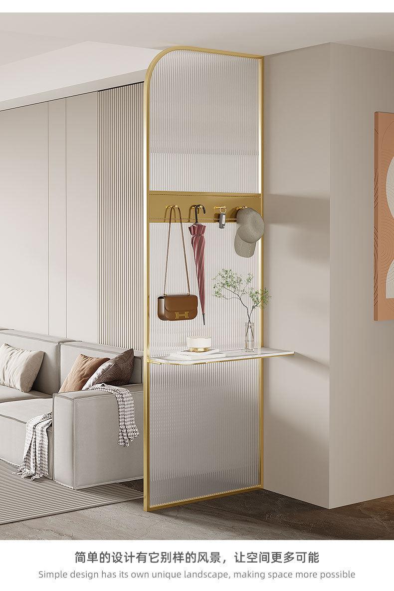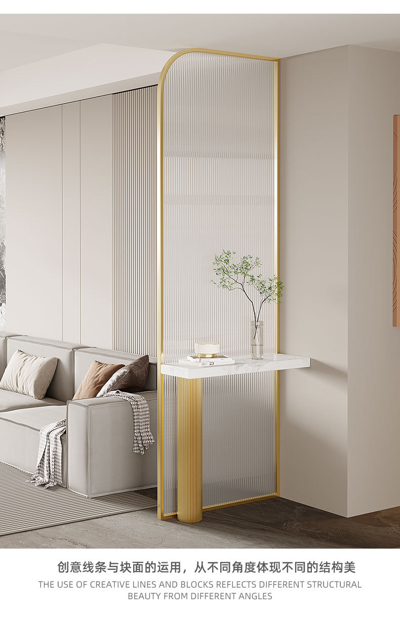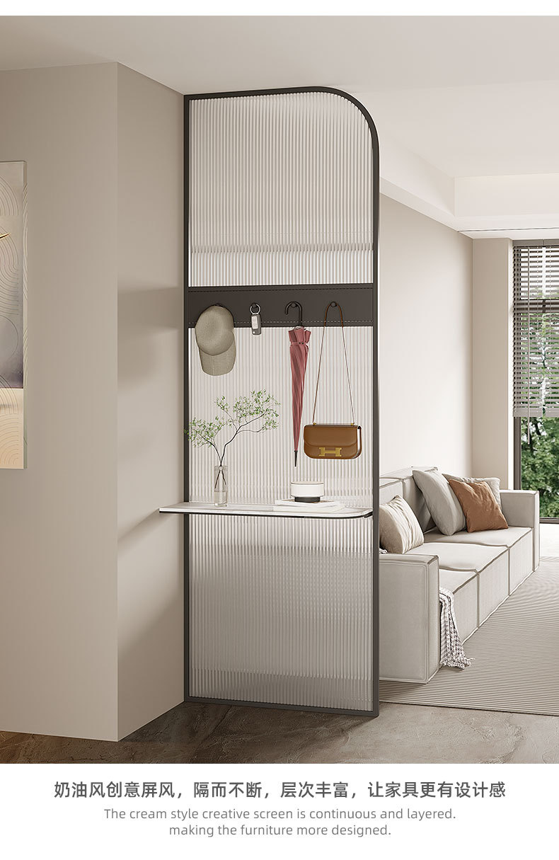 크림 스타일의 하이 엔드 스크린 파티션 입구 문 차폐 거실 창홍 유리 스테인레스 스틸 입구 캐비닛 심플 모던