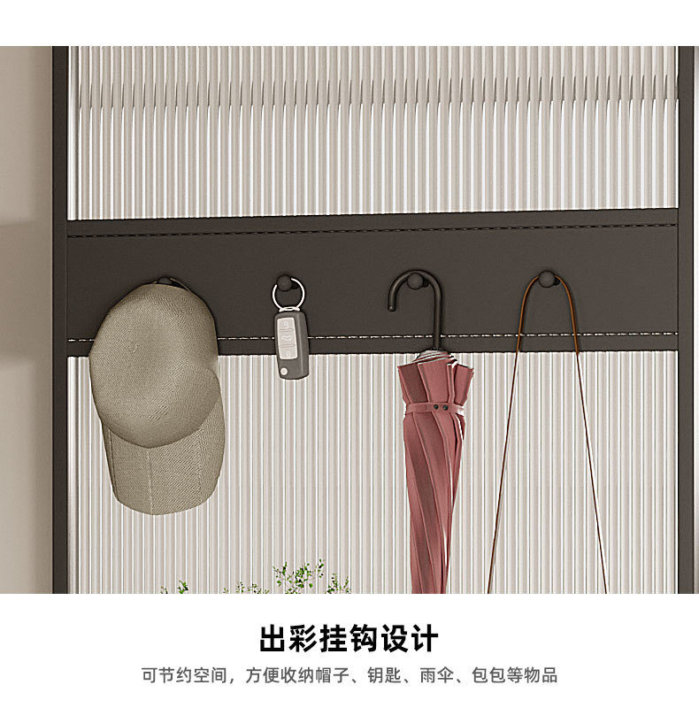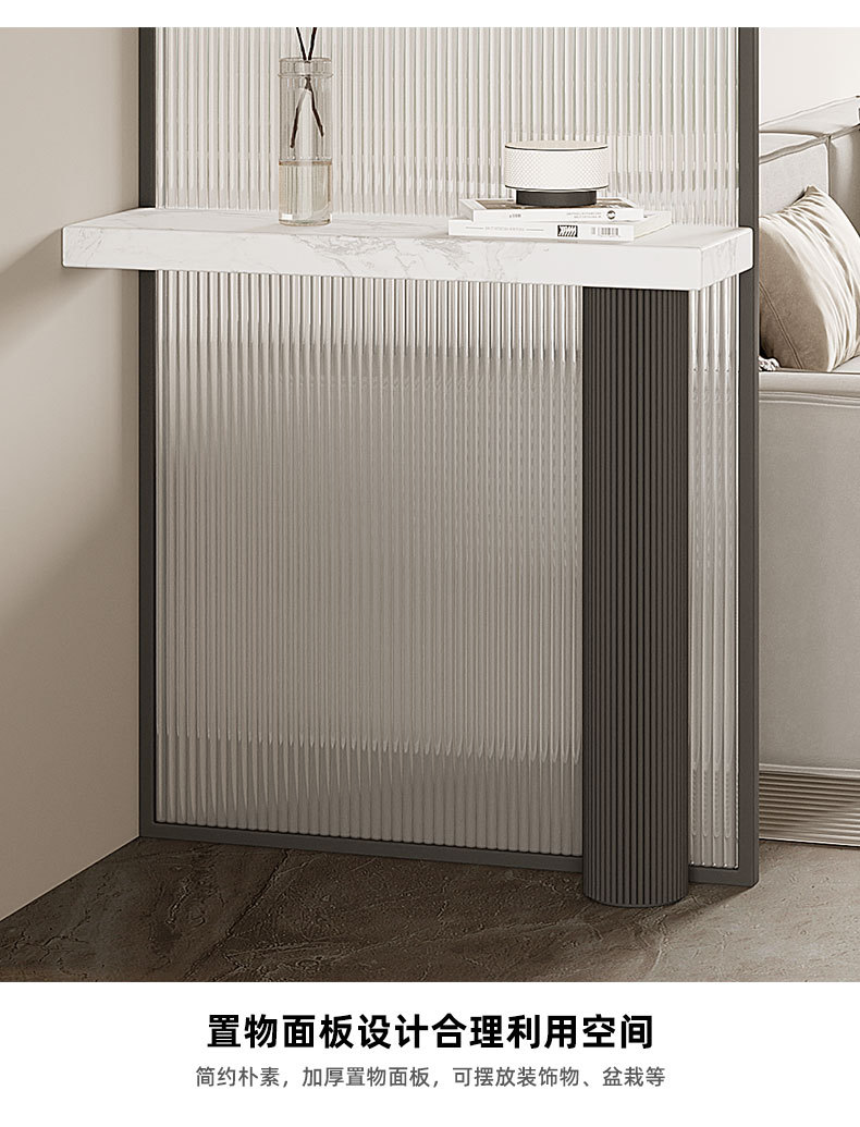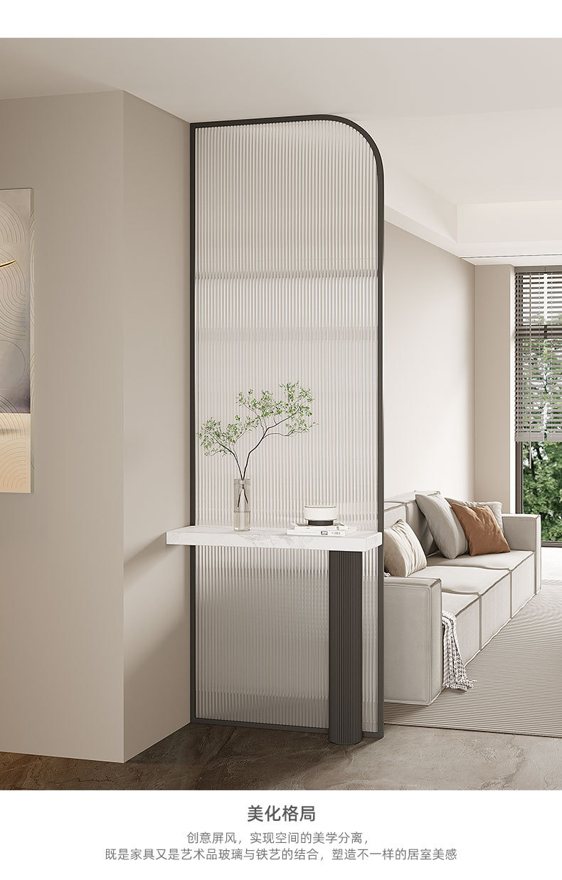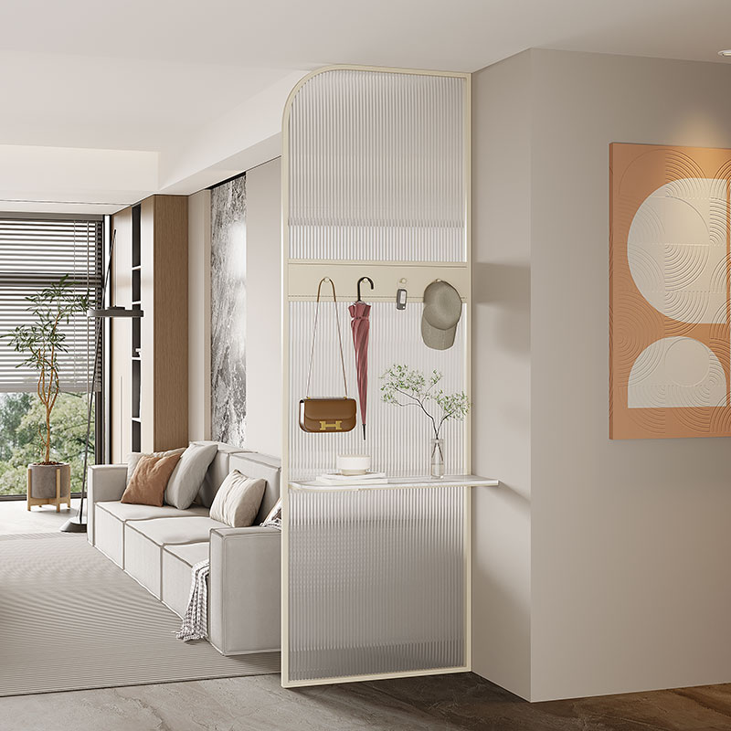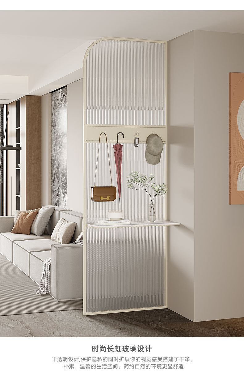 크림 스타일의 하이 엔드 스크린 파티션 입구 문 차폐 거실 창홍 유리 스테인레스 스틸 입구 캐비닛 심플 모던스토어 가기