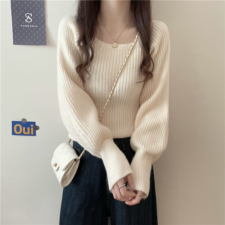 니트 베이스 셔츠 여성용 가을 겨울 2025년 신상품 스타일리시한 로우넥 긴팔 탑 슬림핏 풀오버 스웨터 겨울용스토어 가기
