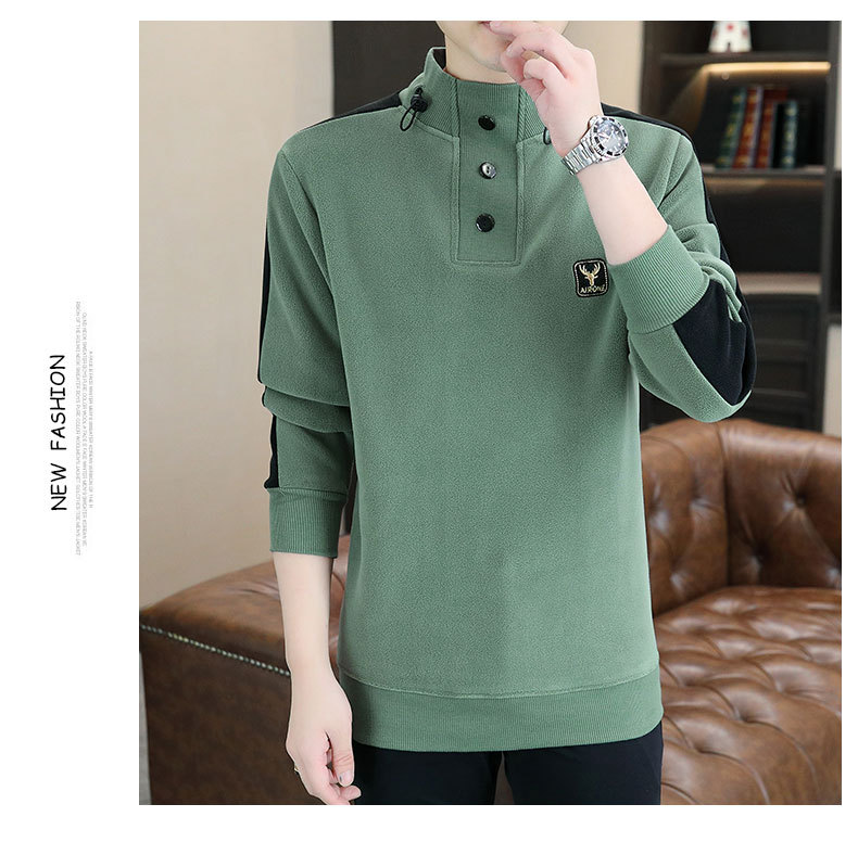 하프 하이 칼라 스웨터 남자의 가을과 겨울 새로운 기모 두꺼운 따뜻한 내부 베이스 셔츠 탑 오스트리아 곡물 양털 긴팔 티셔츠
