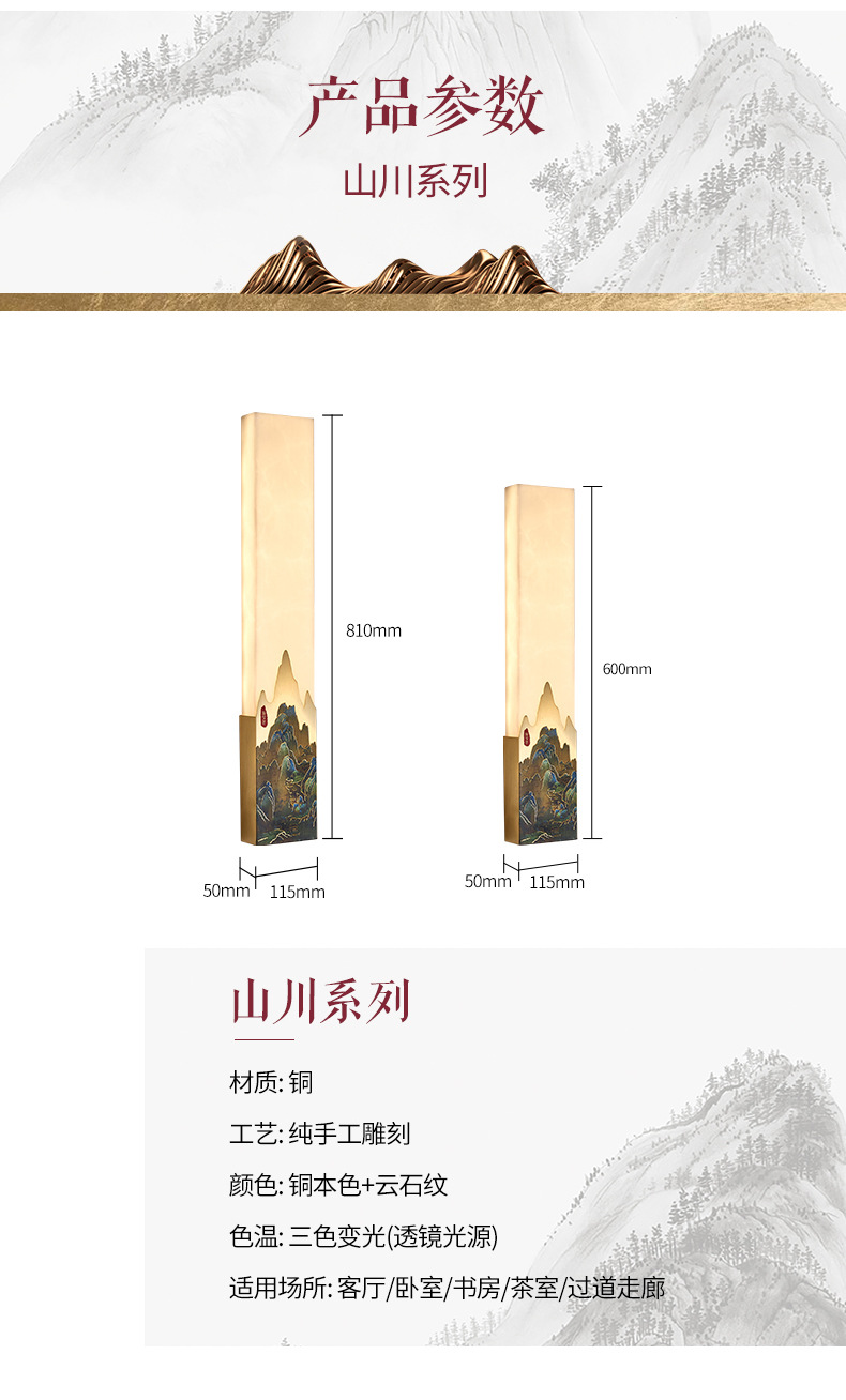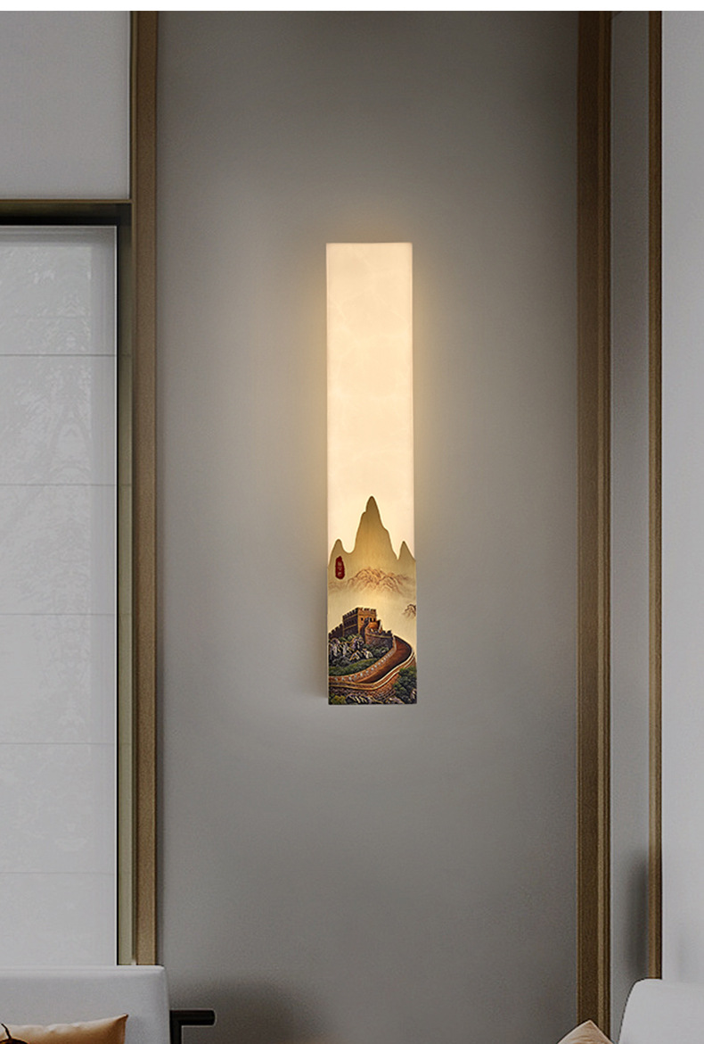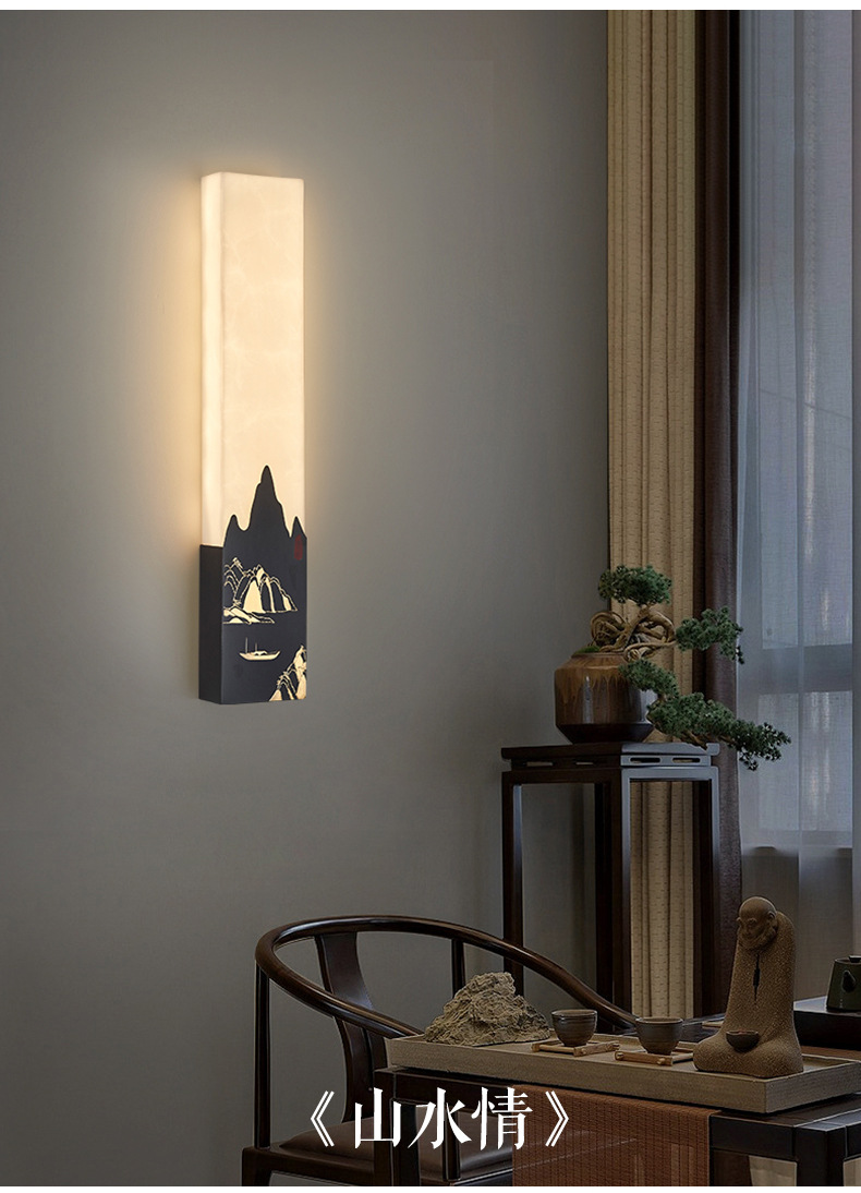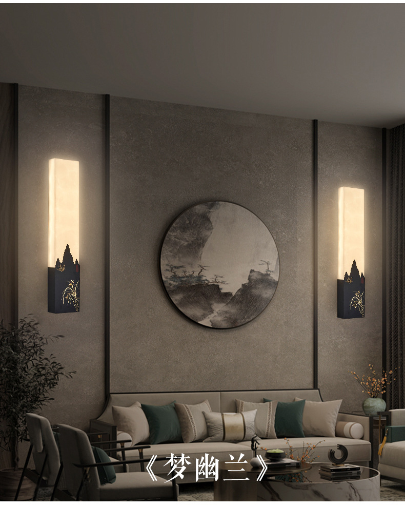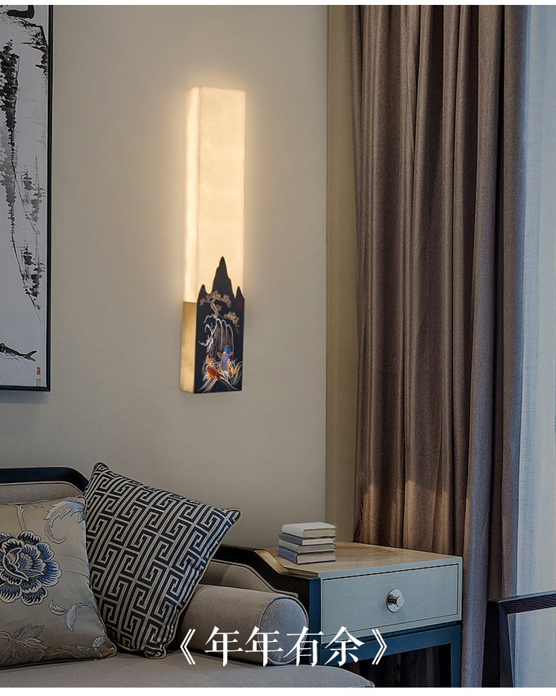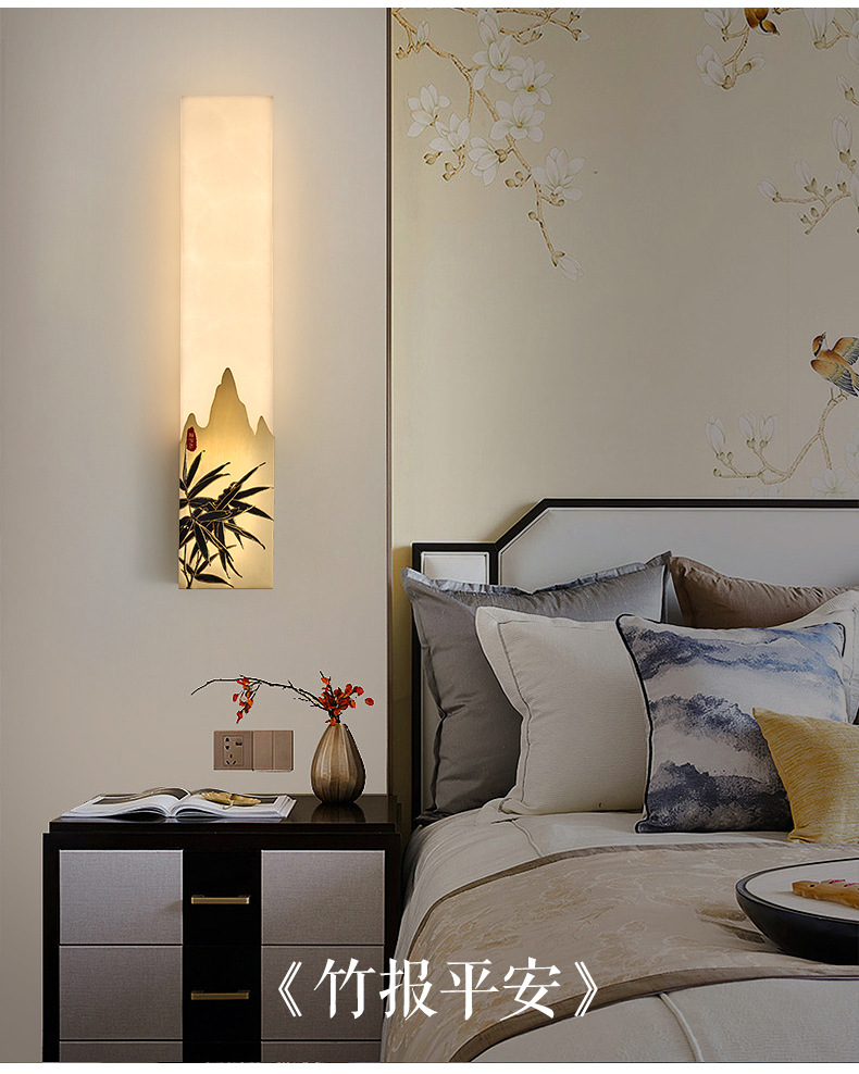 全铜新中式壁灯高端大气卧室灯背景墙玄关走廊中国风天然云石灯具스토어 가기