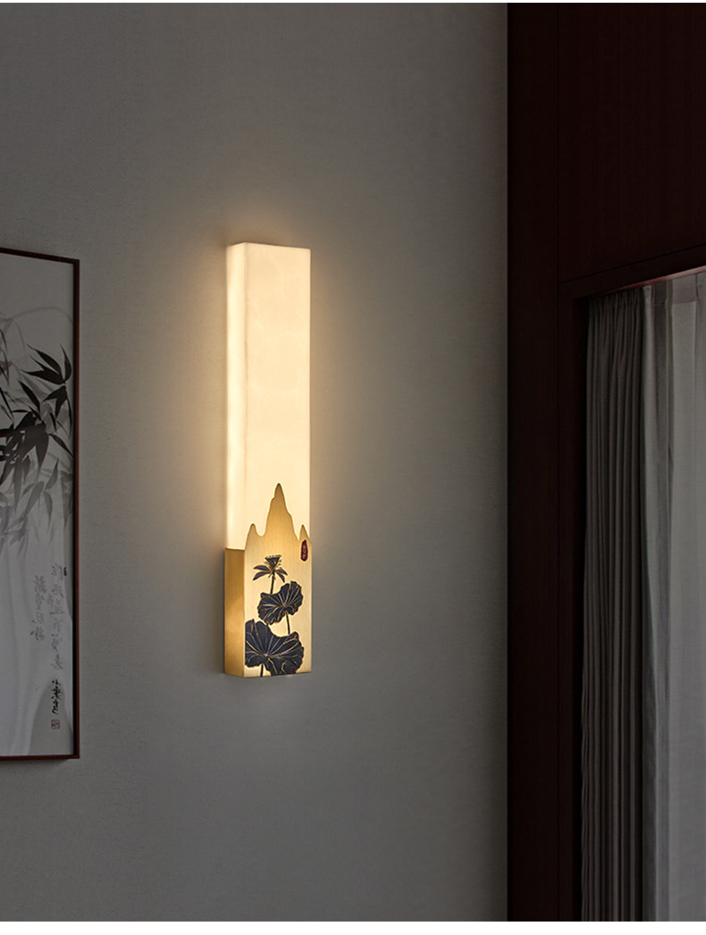 全铜新中式壁灯高端大气卧室灯背景墙玄关走廊中国风天然云石灯具