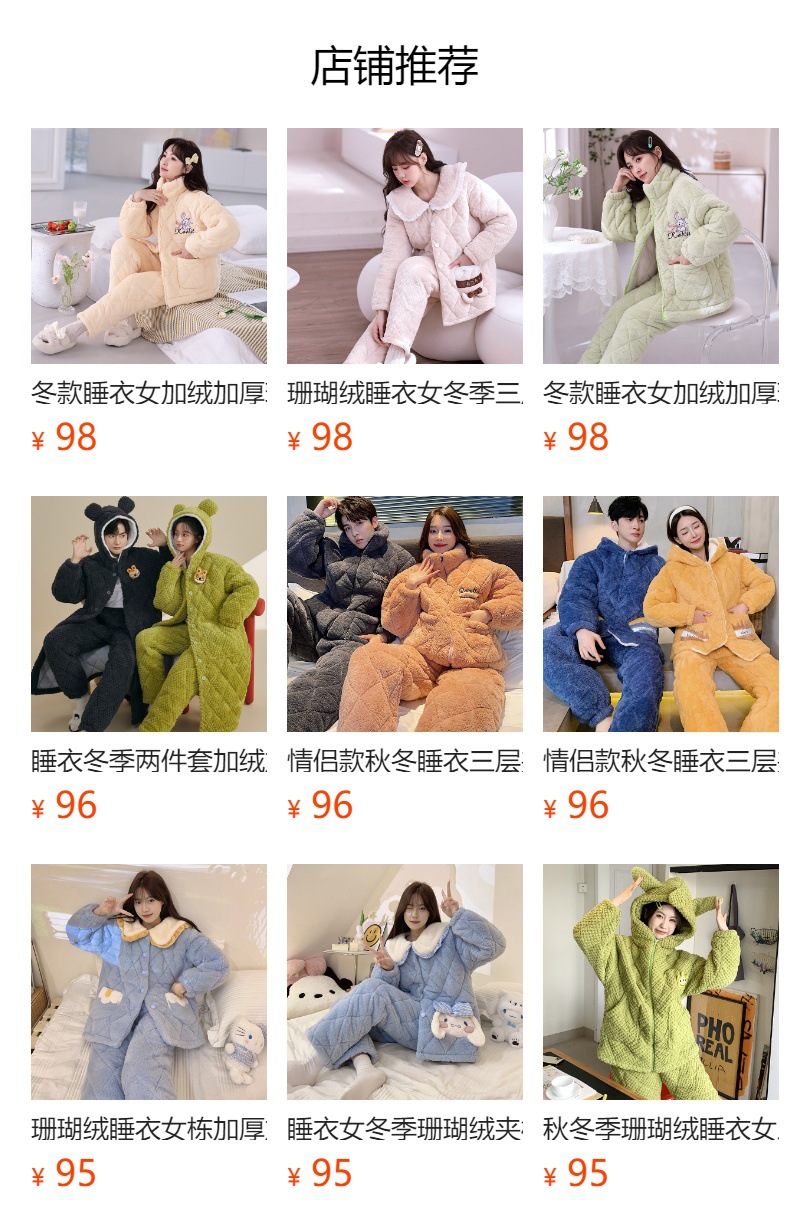 잠옷 여자의 겨울 산호 양털 3 층 두꺼운 기모 가정 옷 달콤한 귀여운 플란넬 따뜻한 느슨한 세트스토어 가기