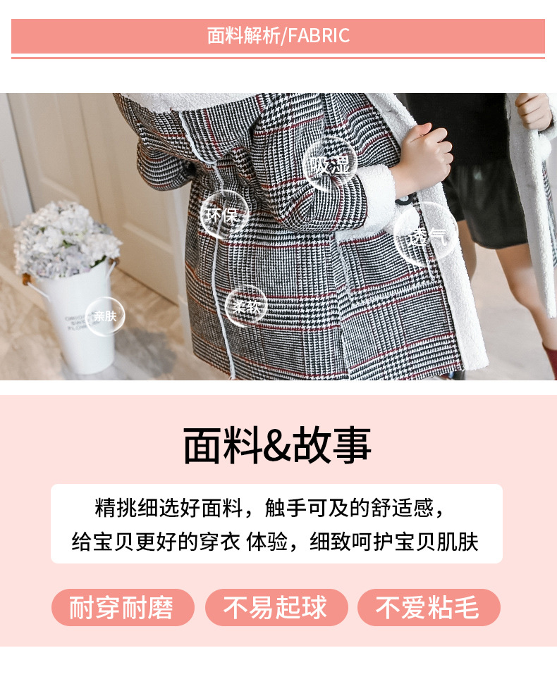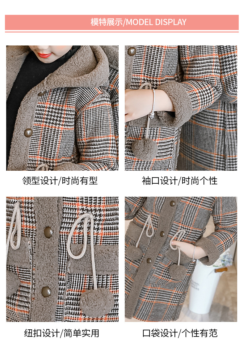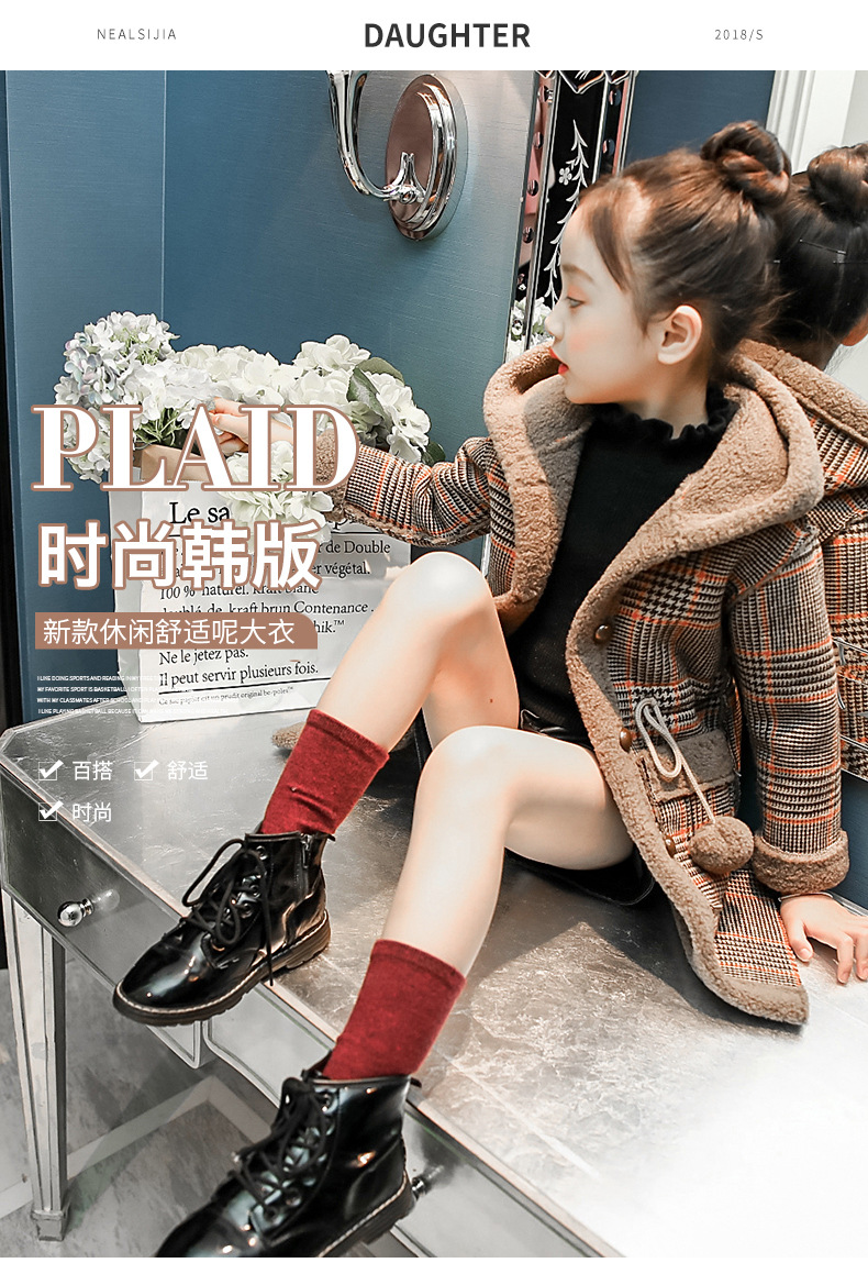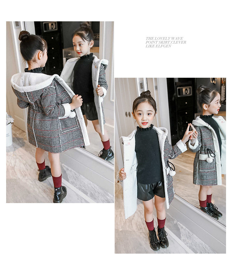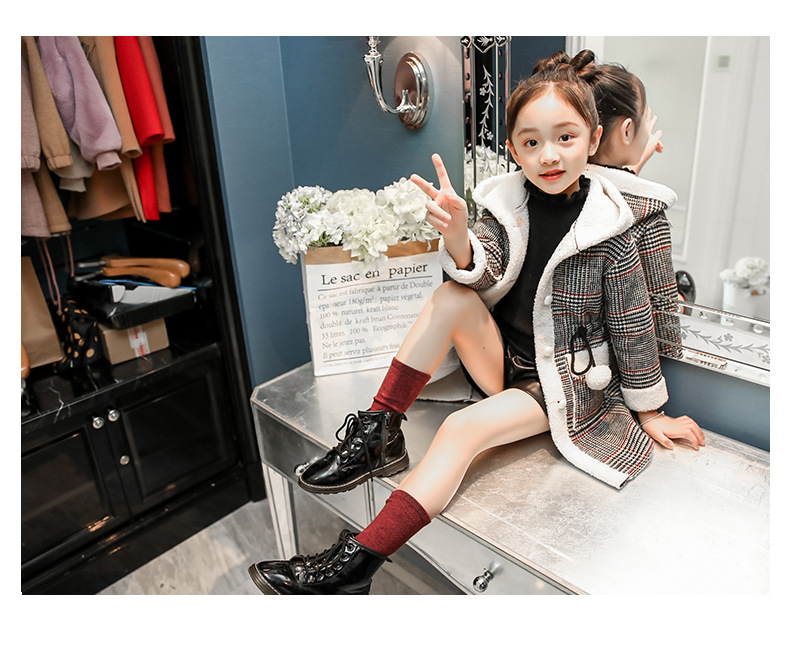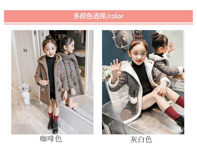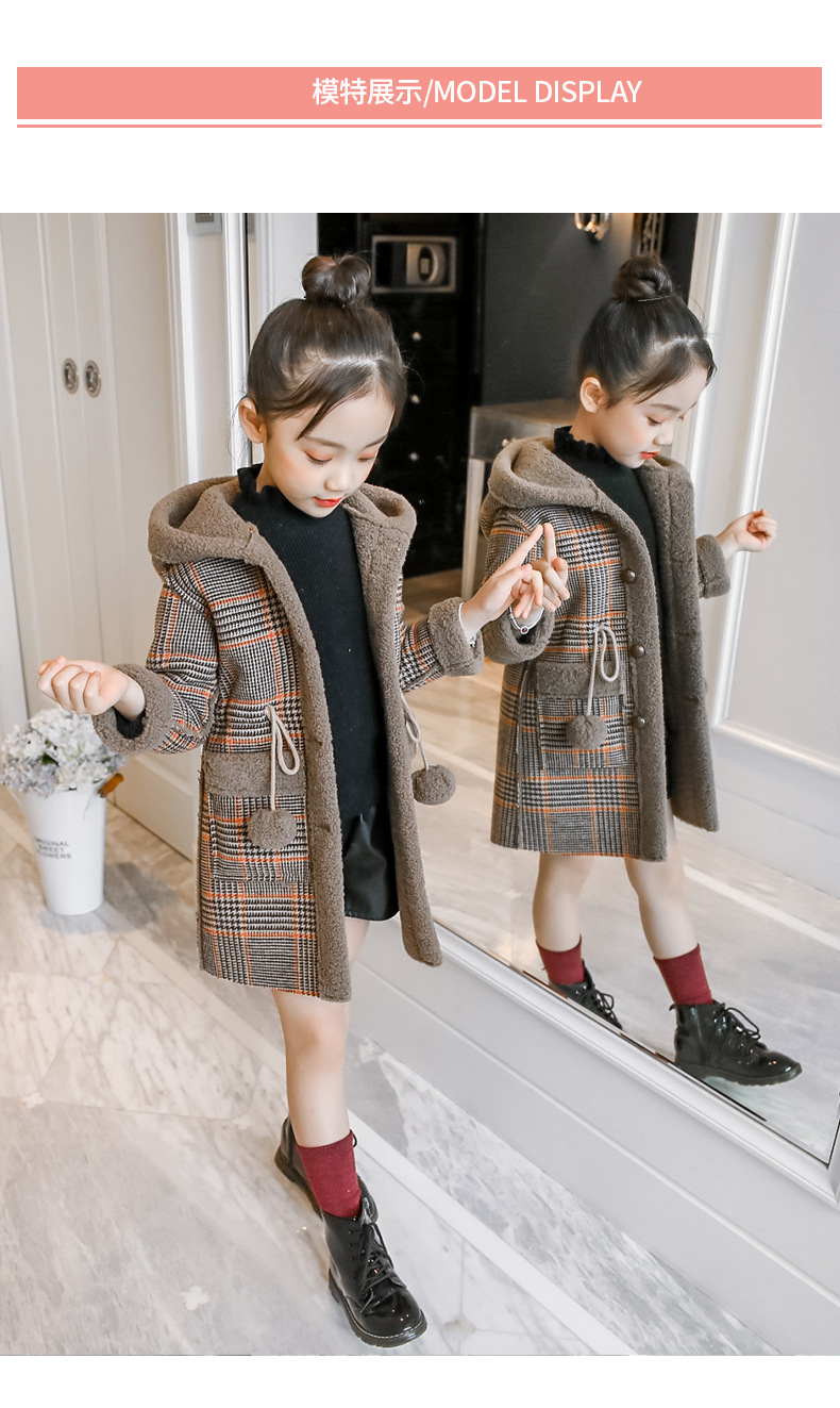 아동복 겨울 신상 여아용 플리스 안감 한국 스타일 체크무늬 코트 2023 아동 패션 후드 따뜻한 재킷 트렌디