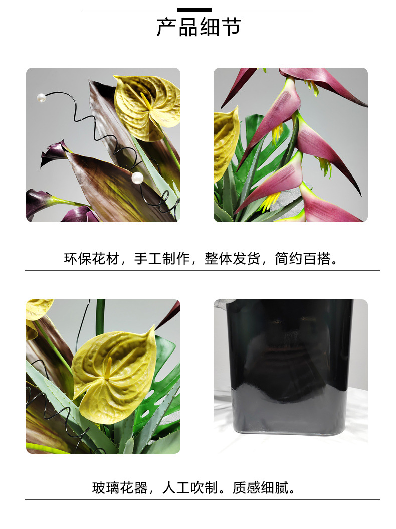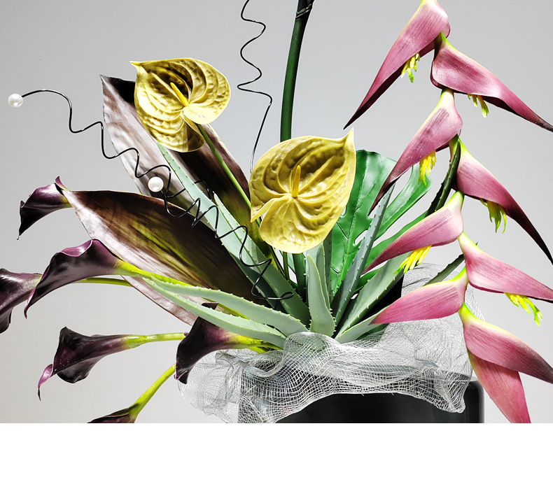 현대 인공 꽃 거실 홈 부드러운 꽃 유리 꽃꽂이 빛 럭셔리 간단한 장식 거실 장식품