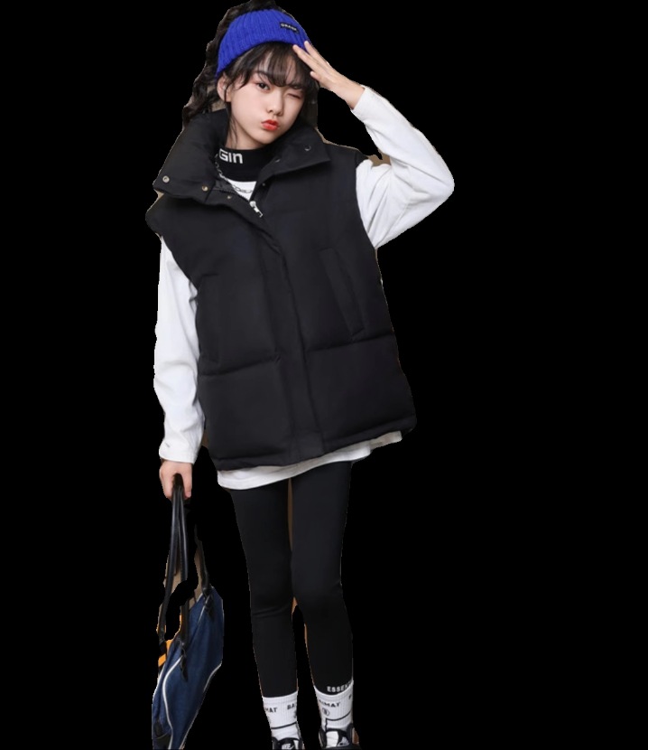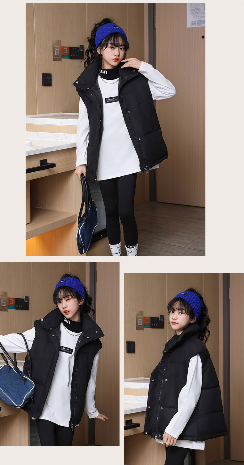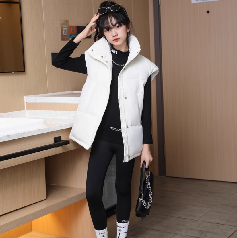 [리얼샷 재고] 여아 양복 조끼 23 가을과 겨울 여아 유행 민소매 양복 조끼 패딩 다운 코튼 양복 조끼스토어 가기