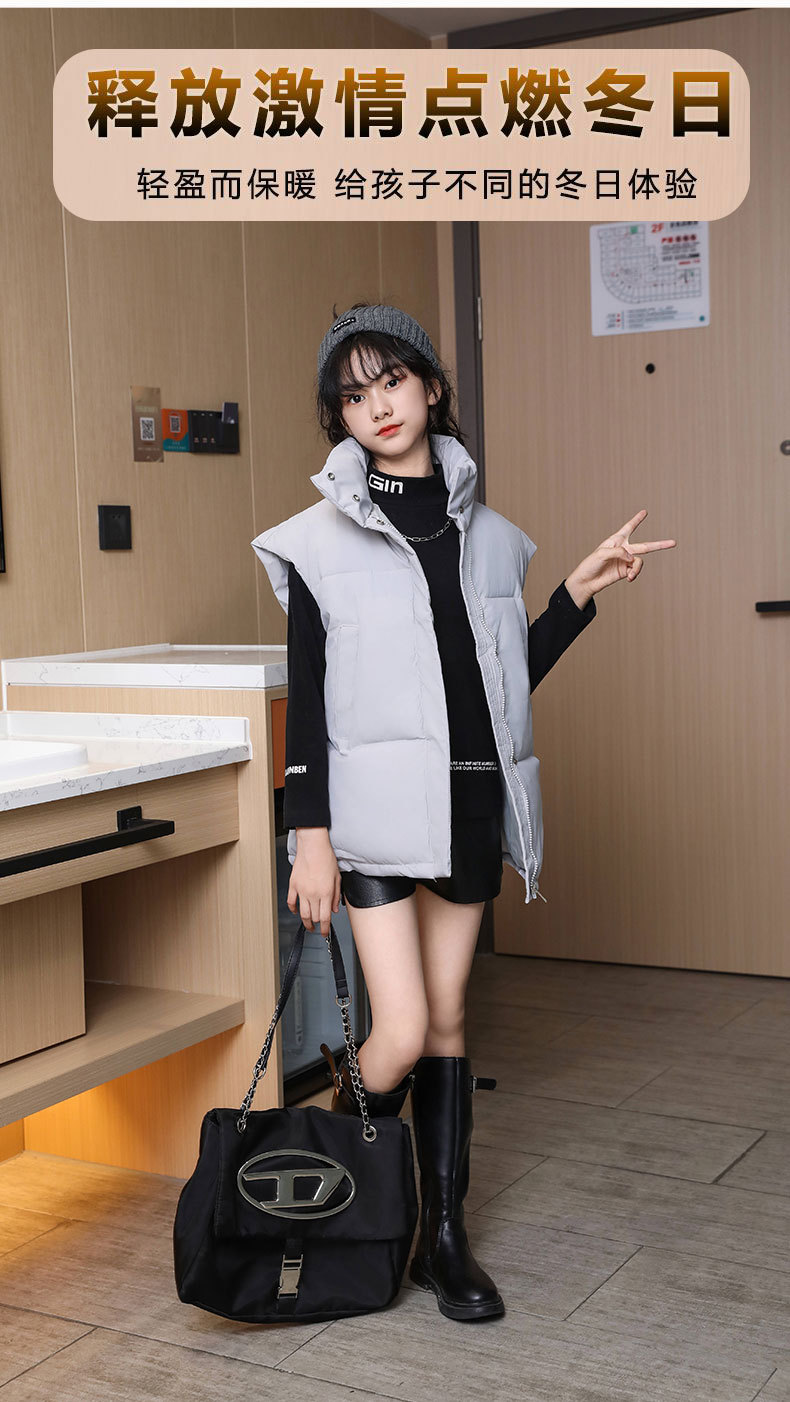 [리얼샷 재고] 여아 양복 조끼 23 가을과 겨울 여아 유행 민소매 양복 조끼 패딩 다운 코튼 양복 조끼