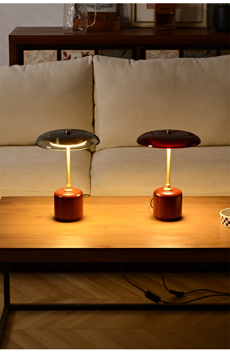 • 단단한 나무 유리 테이블 램프 소형(전체 스펙트럼)