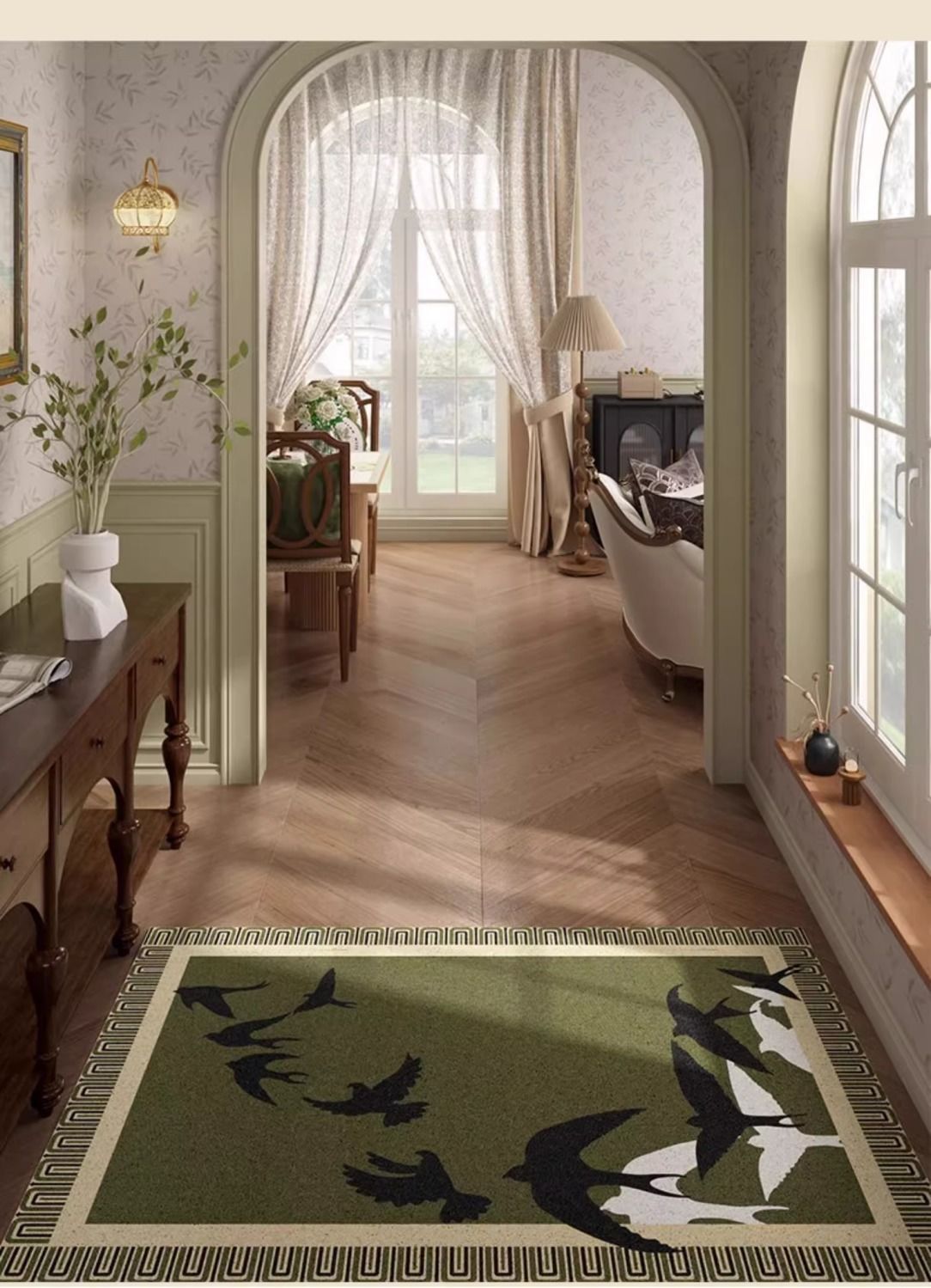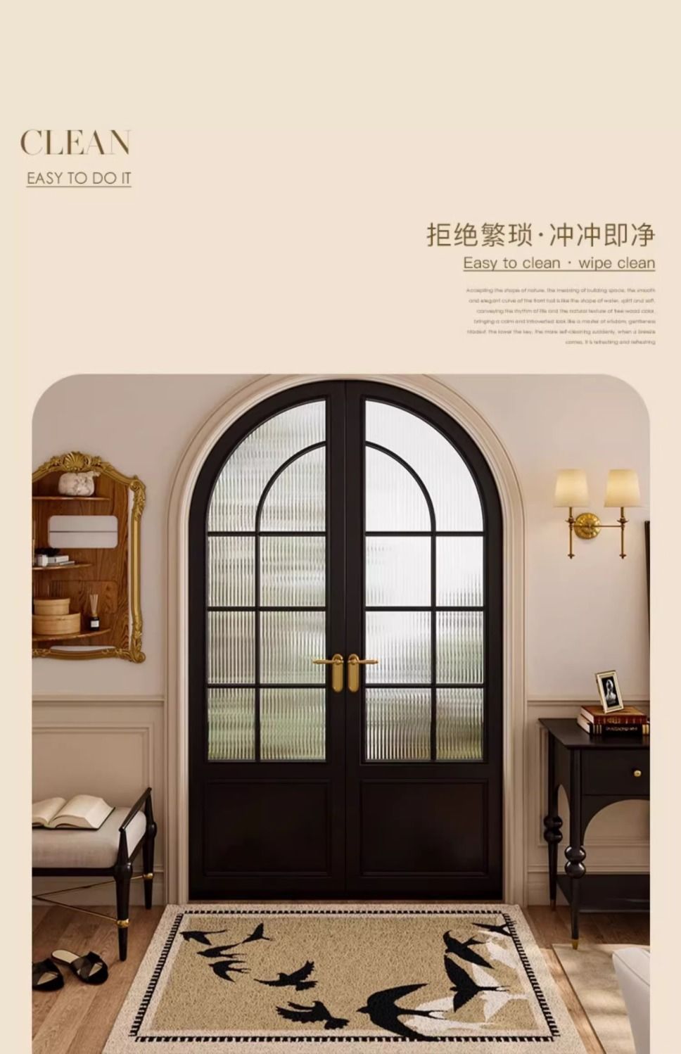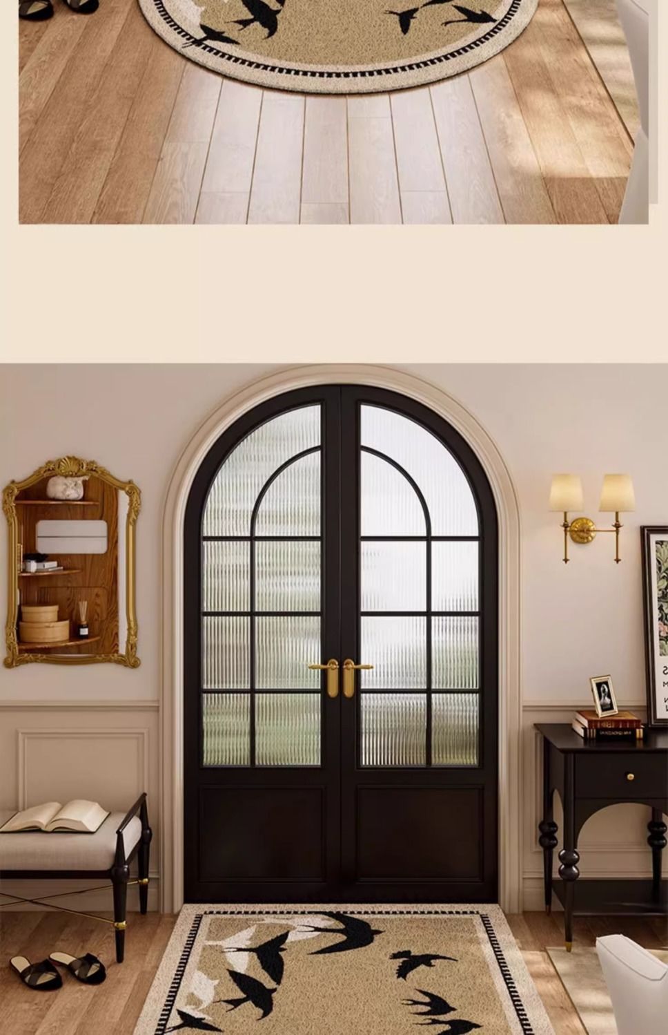 프랑스 앤틱 하이 레벨 홈 매트 가정용 현관 진흙 긁기 먼지 제거 실크 링 매트 머리카락 생성