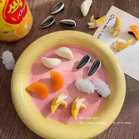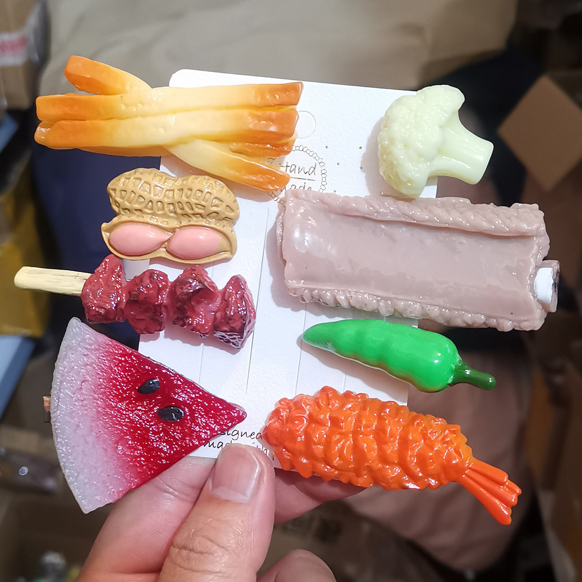 재미있는 시뮬레이션 성격 오리 지폐 클립 머리핀 과일 음식 놀이 귀여운 간식 머리핀 헤어 액세서리 머리 장식 도매