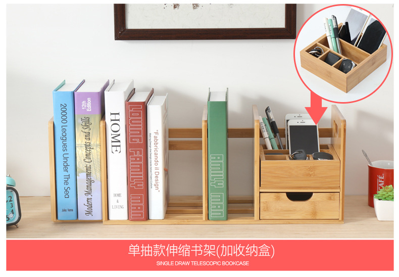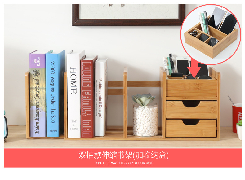 간단한 데스크탑 소형 책장 사무실 기숙사 책상 서랍이 있는 확장형 수납 선반 접이식 책장