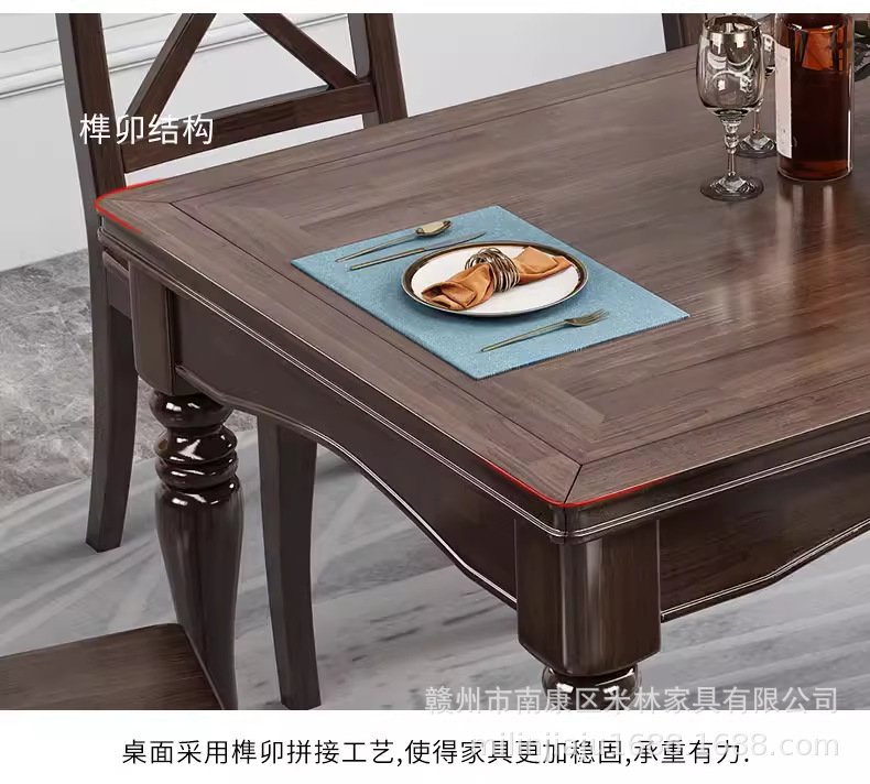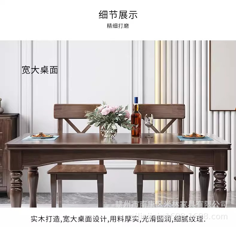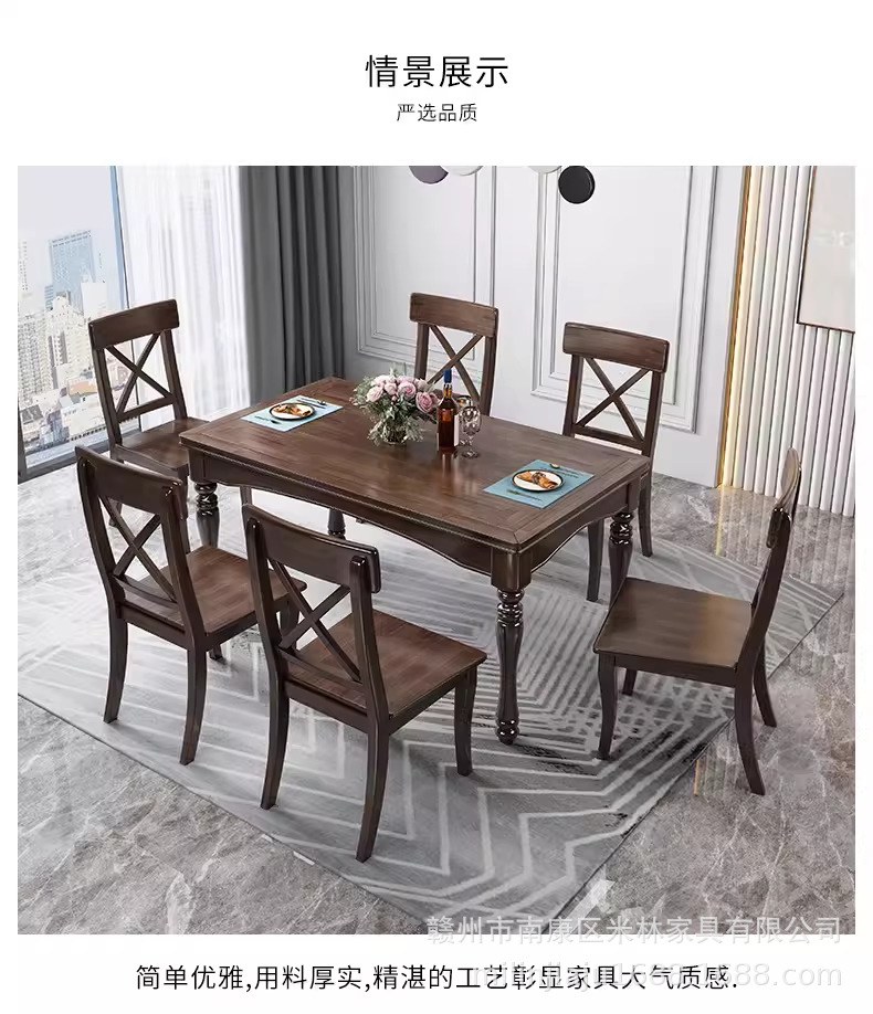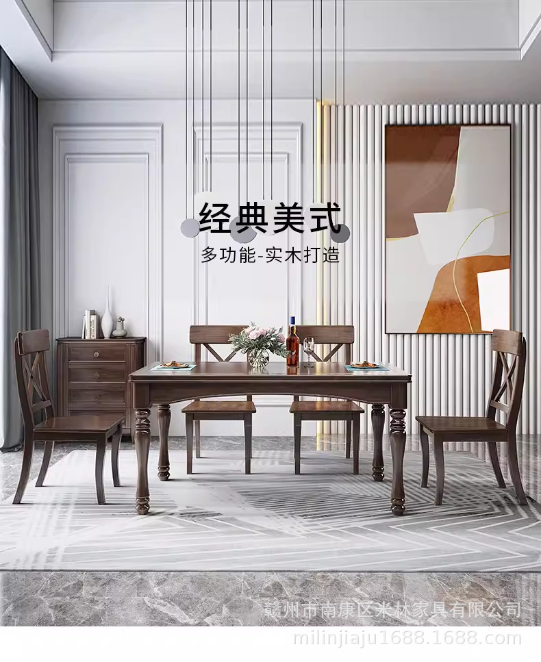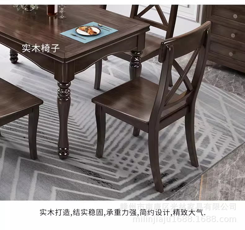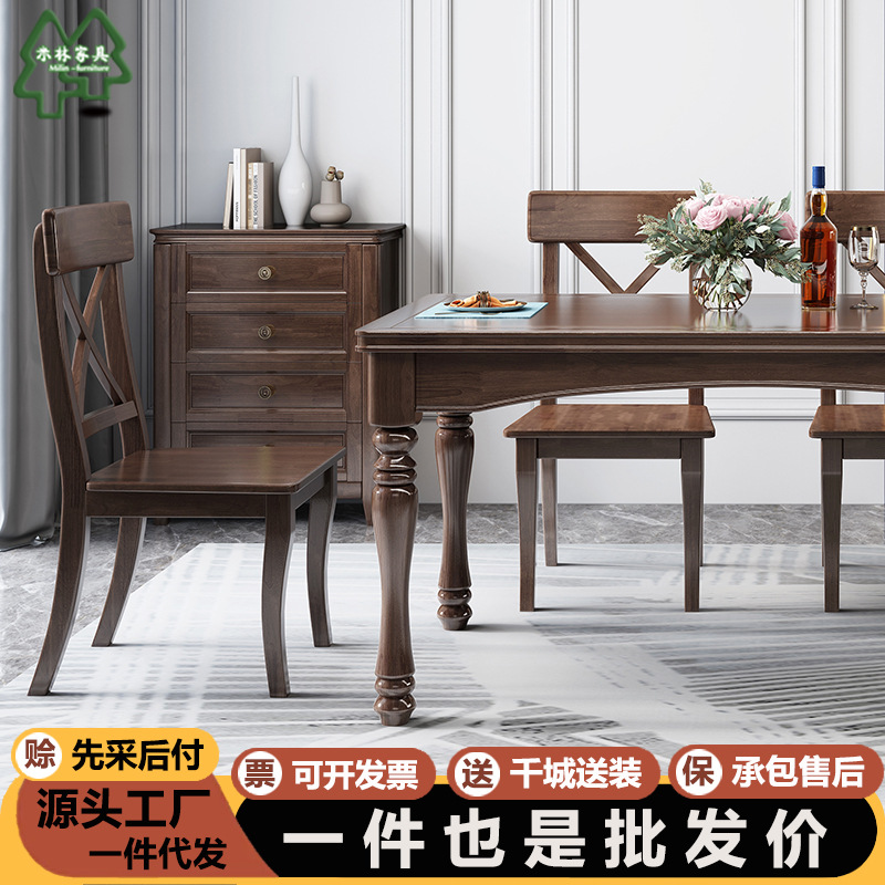 미국 복고풍 모든 단단한 나무 식탁과 의자 조합 가정용 작은 직사각형 식탁 현대 간단한 단단한 나무 가구스토어 가기