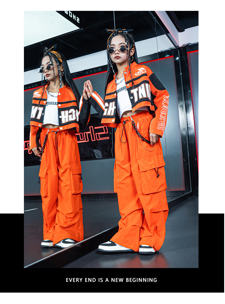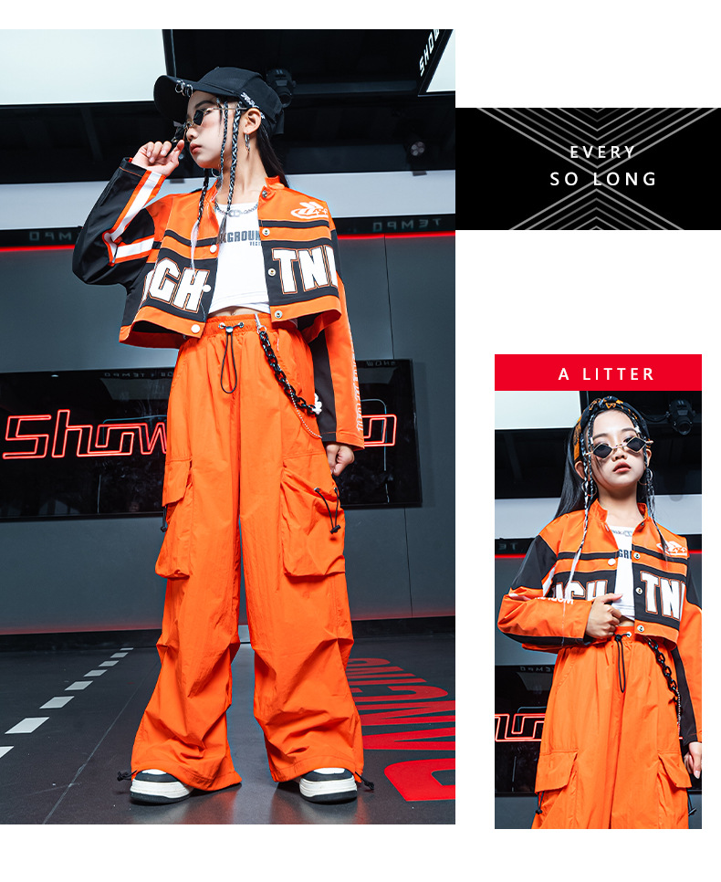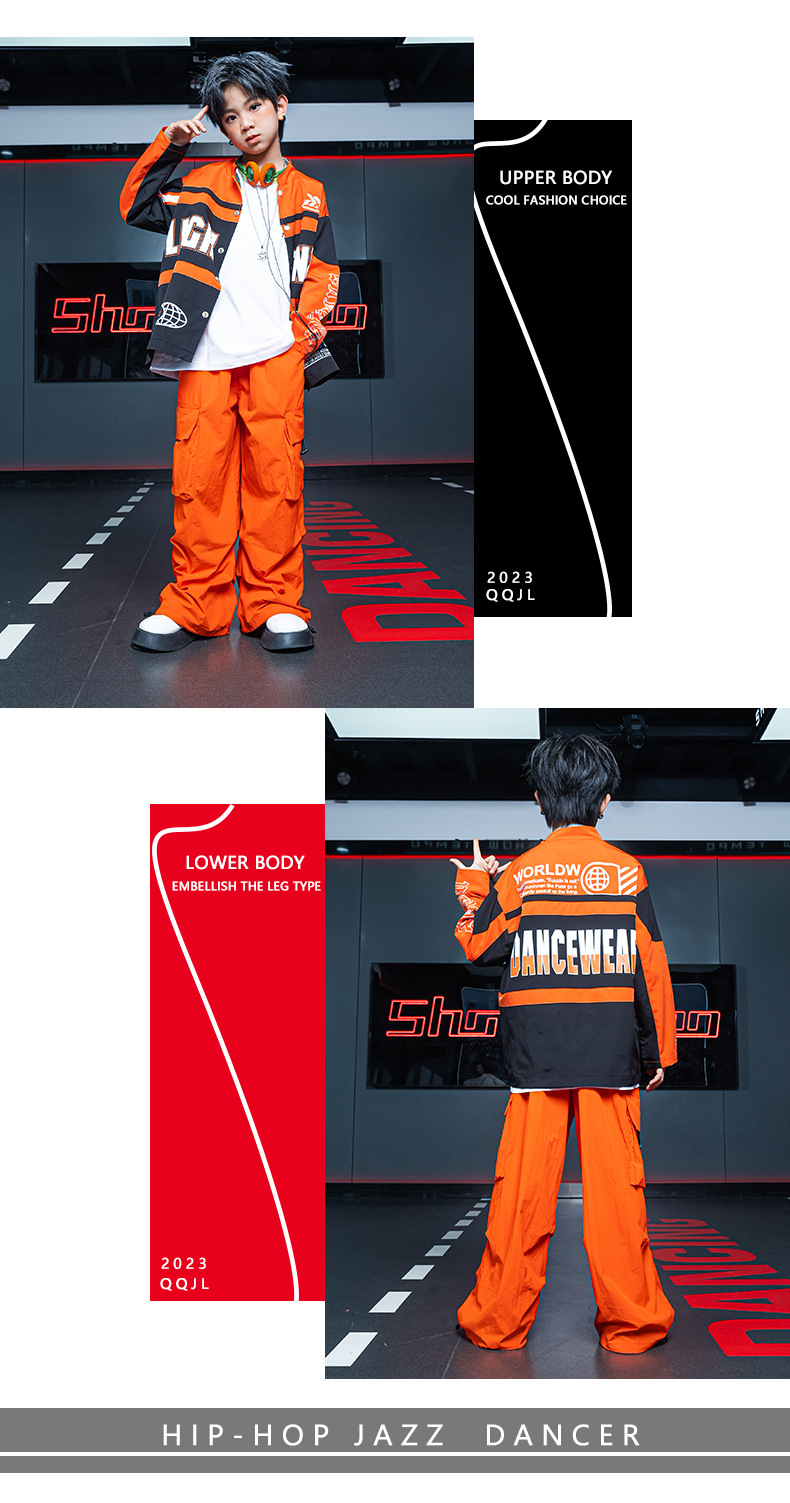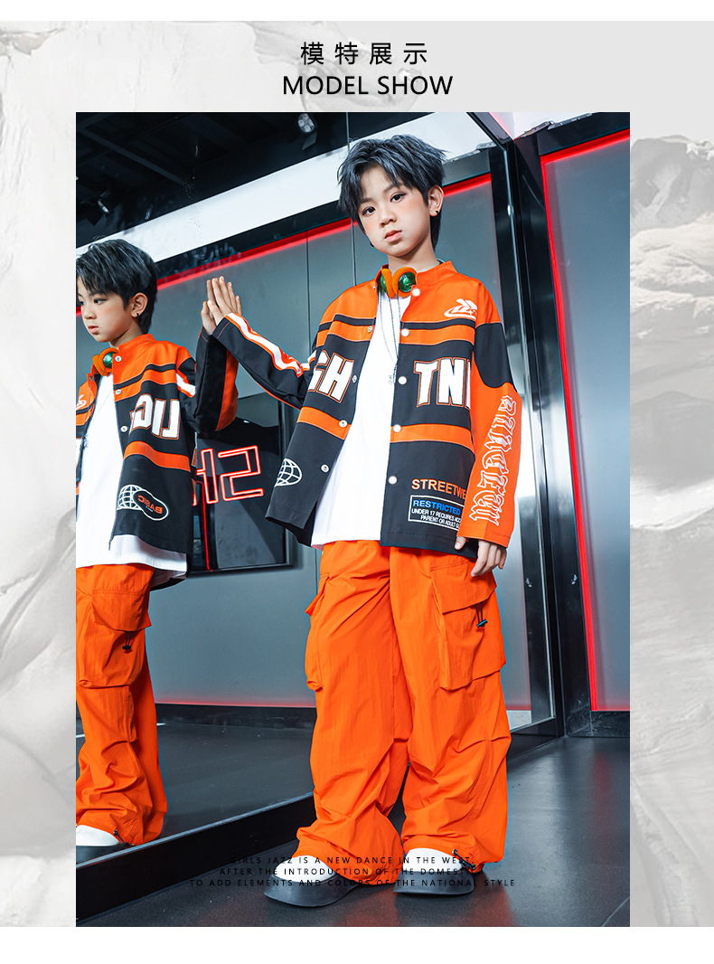 성능 힙합 패션 의류 멋진 재즈 오토바이 의류 세트 소년과 소녀 튀김 거리 힙합 어린이 의류스토어 가기