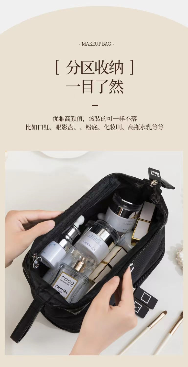 새로운 휴대용 외출용 작은 향수 가방, 다용도 패션 여성 세면용품 이중층 대용량 수납 가방