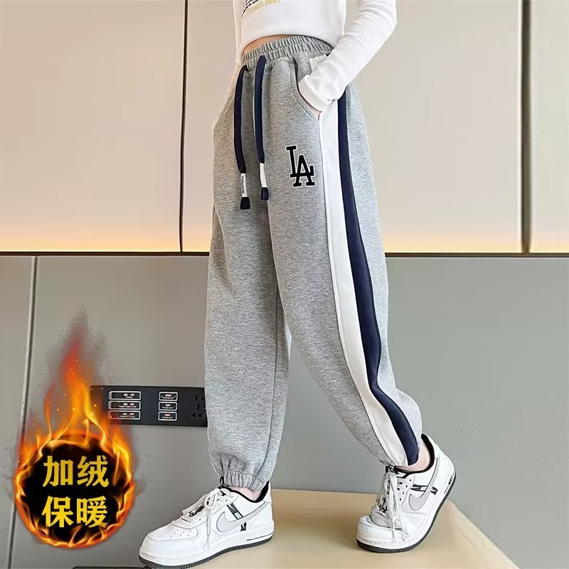 2023 새로운 겨울 소녀 벨벳 바지 두꺼운 캐주얼 스포츠 바지 중대형 어린이 느슨한 다목적 스웨트 팬츠