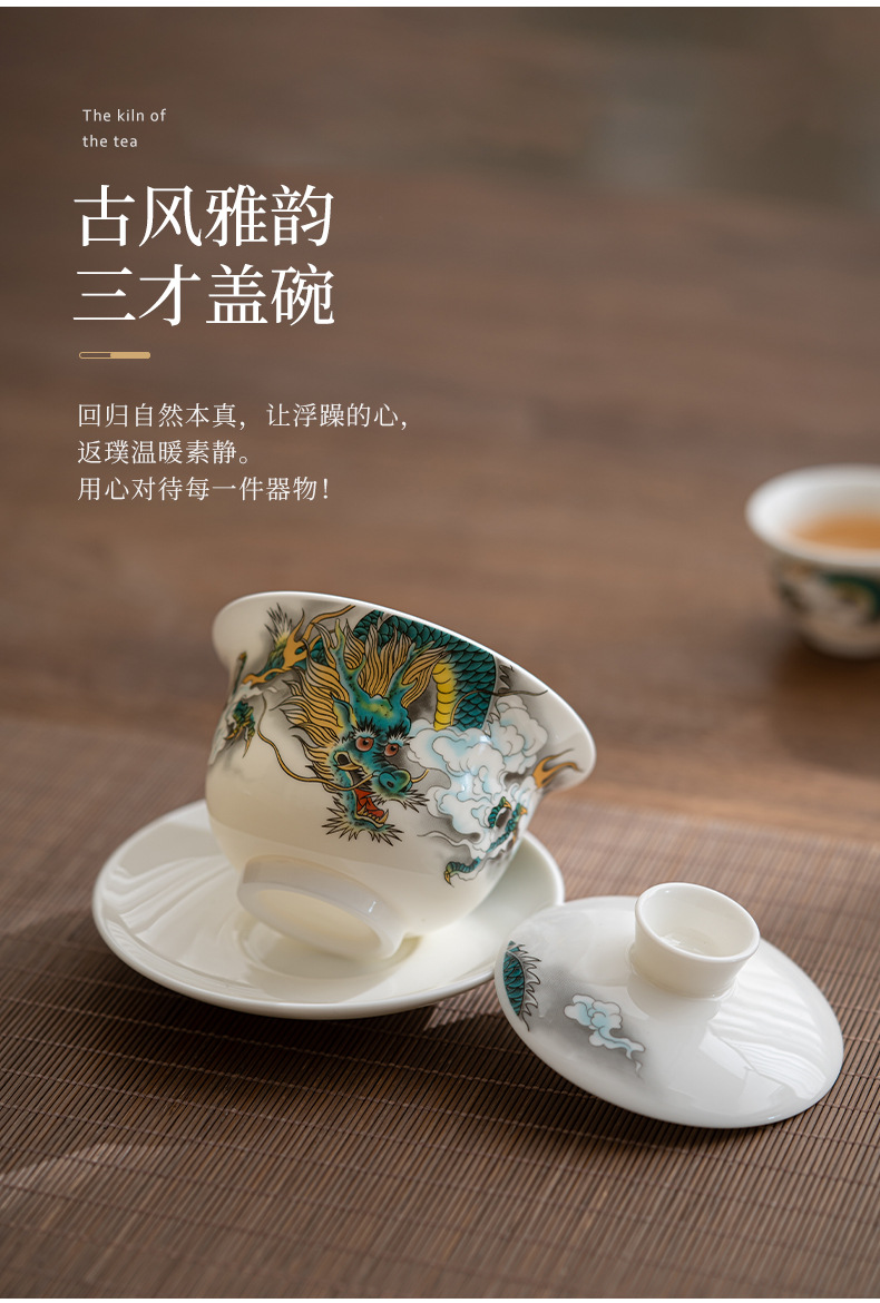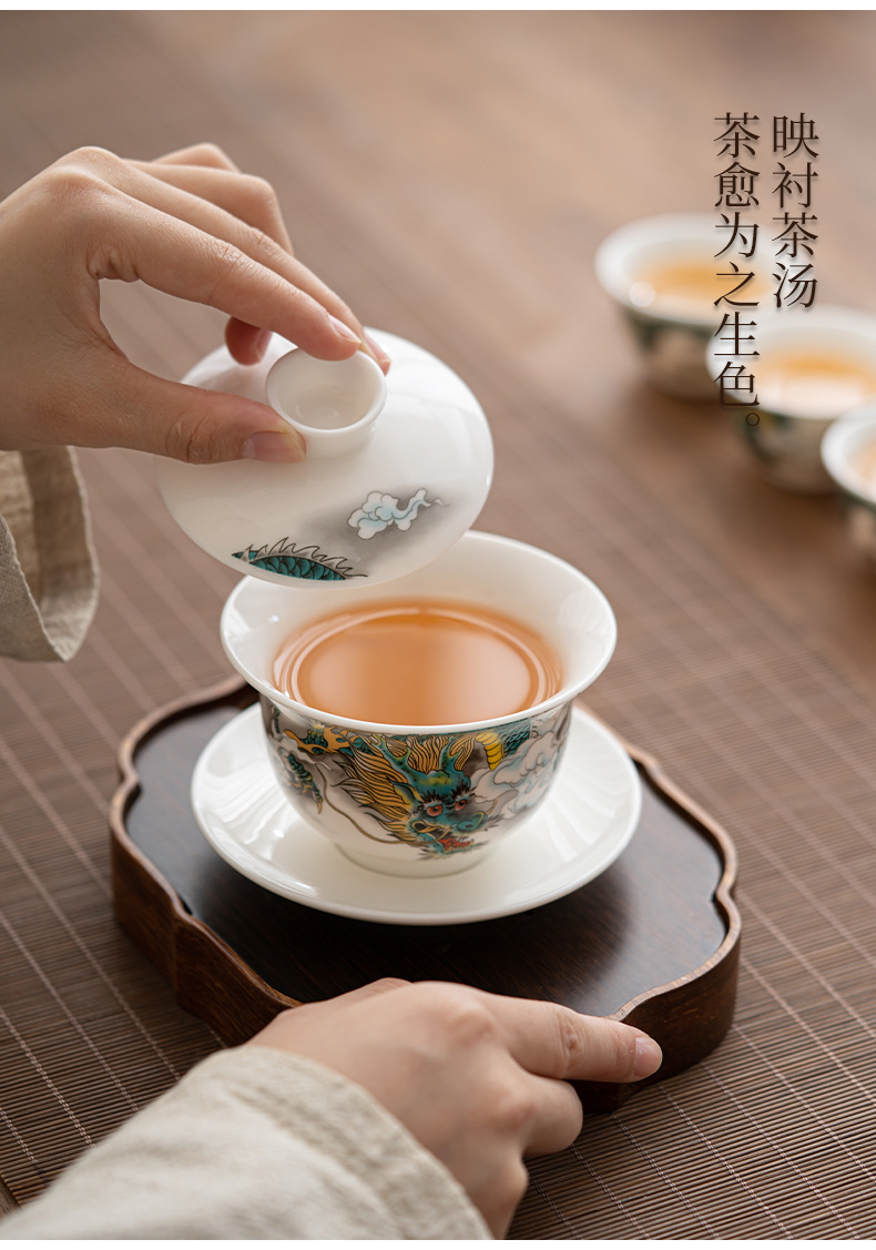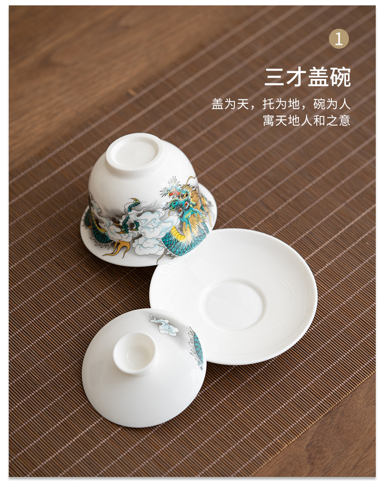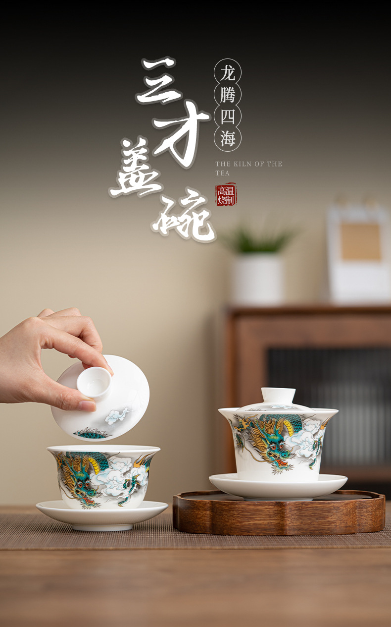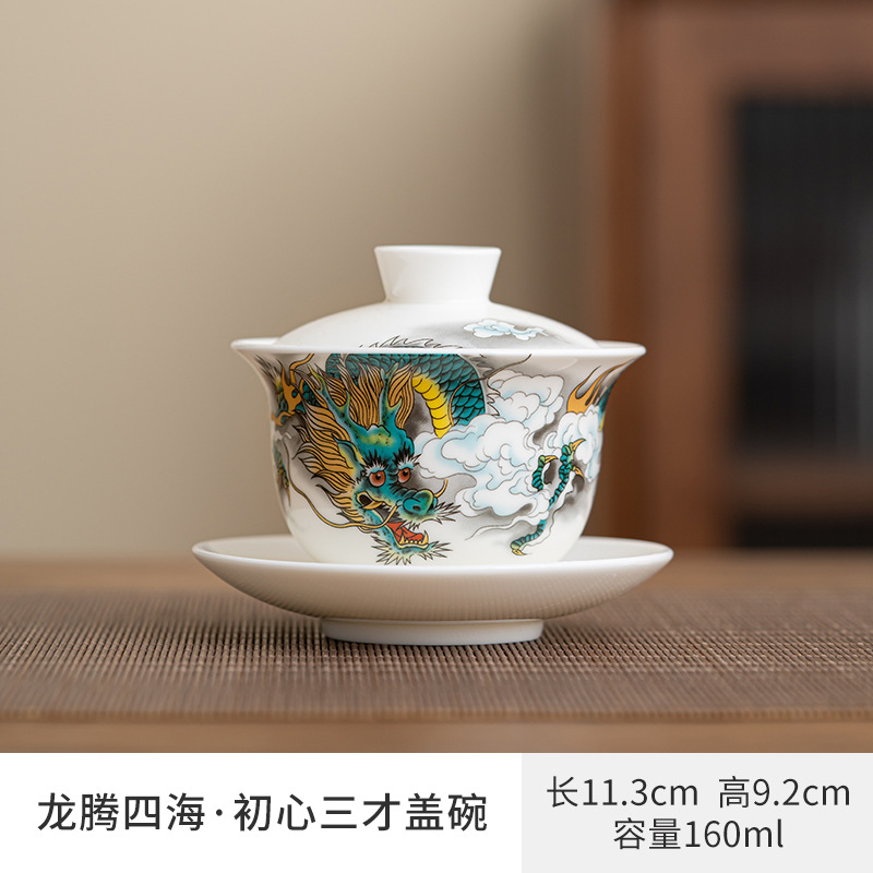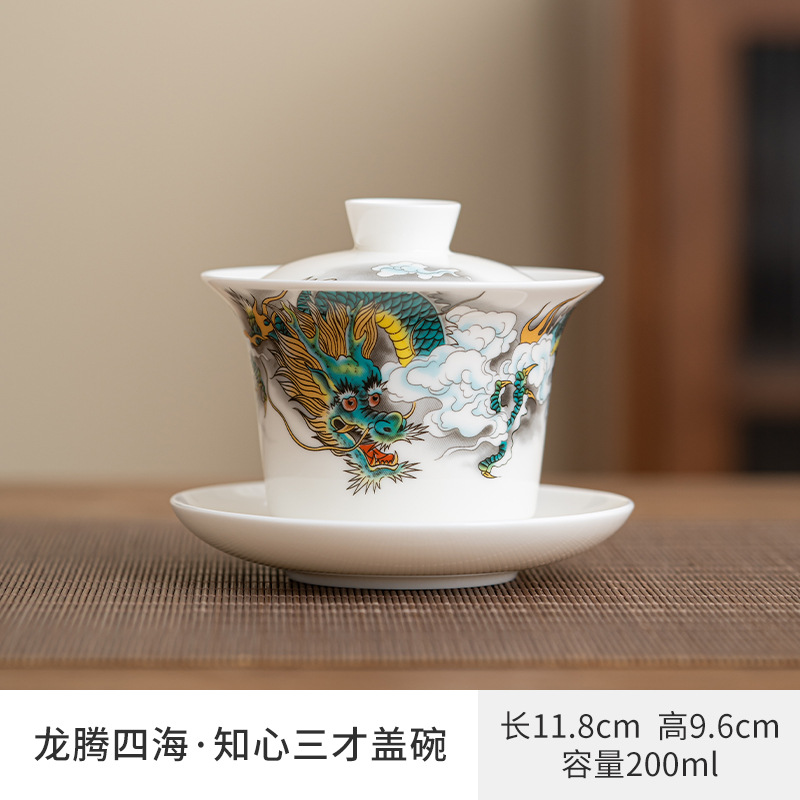 Suet 옥 백자 롱탱 시하이 커버 그릇 찻잔 싱글 세라믹 화상 방지 3 재능 찻그릇 가정용 쿵푸 차 세트
