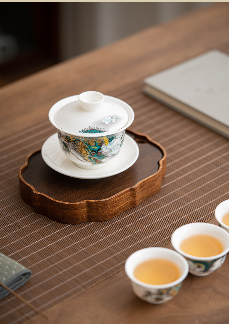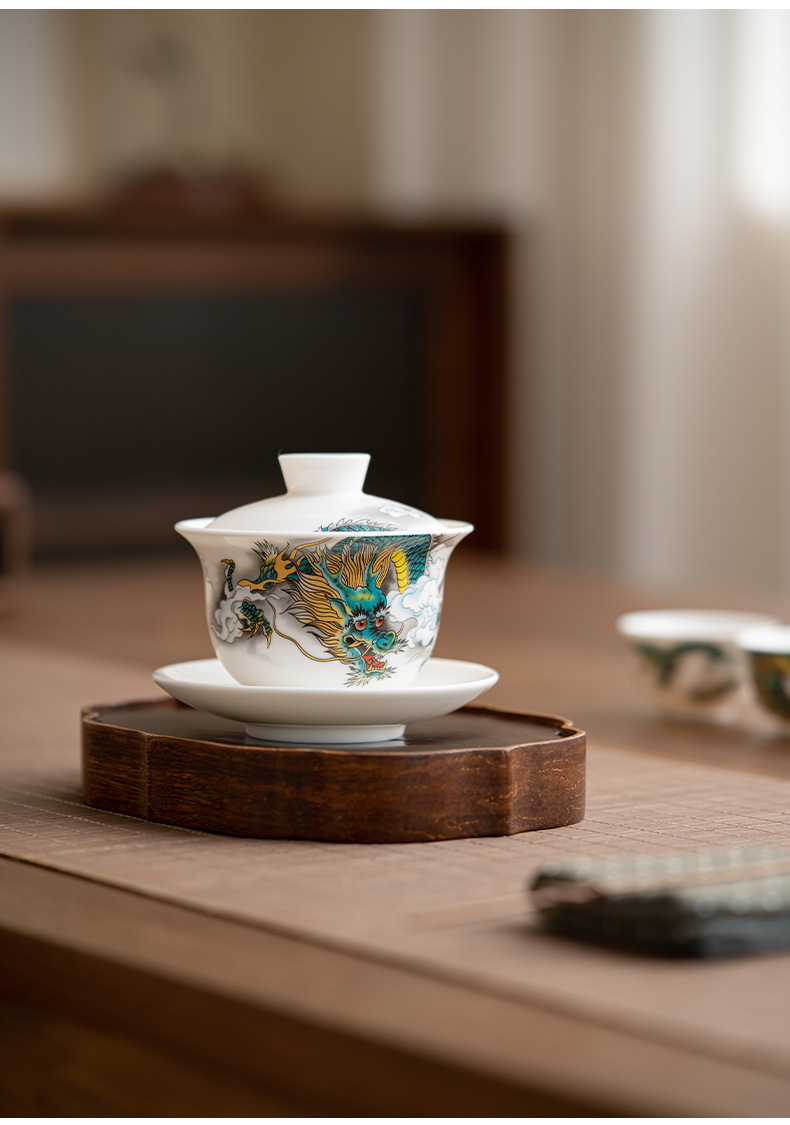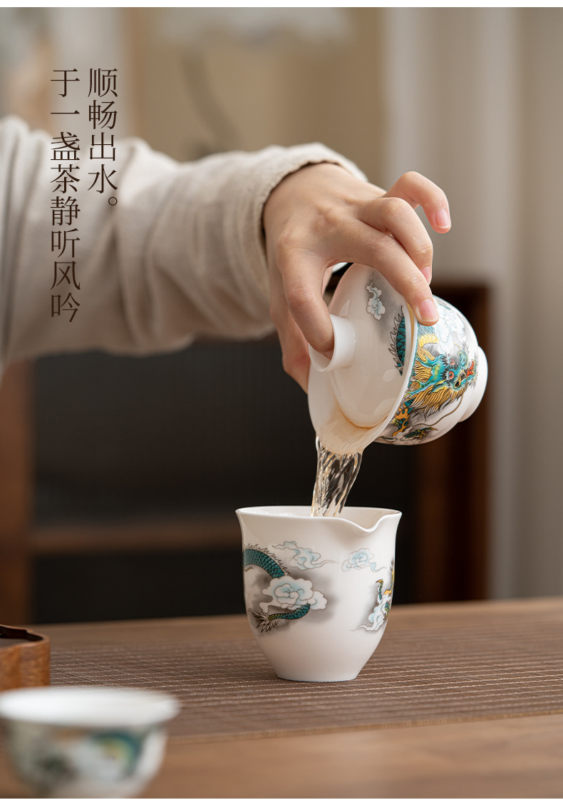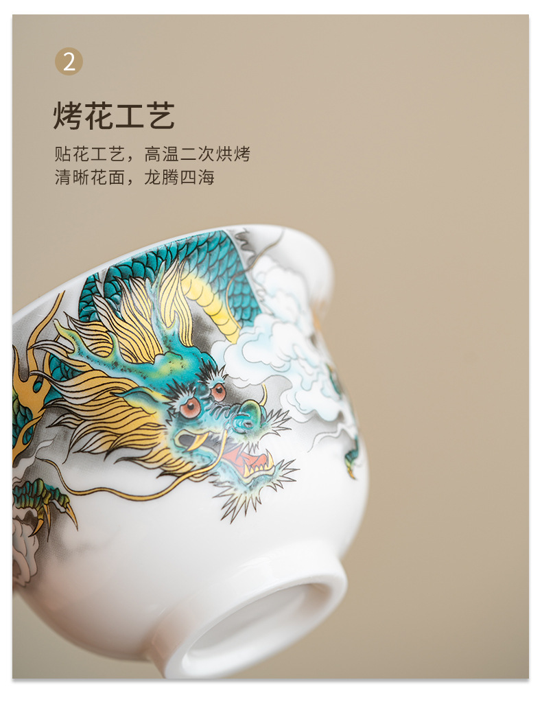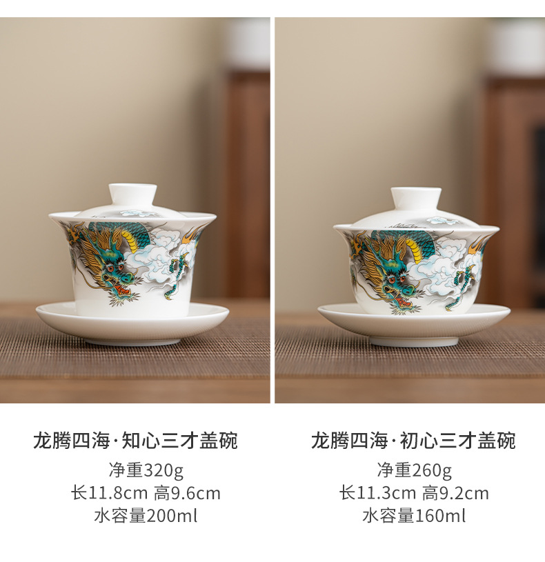Suet 옥 백자 롱탱 시하이 커버 그릇 찻잔 싱글 세라믹 화상 방지 3 재능 찻그릇 가정용 쿵푸 차 세트