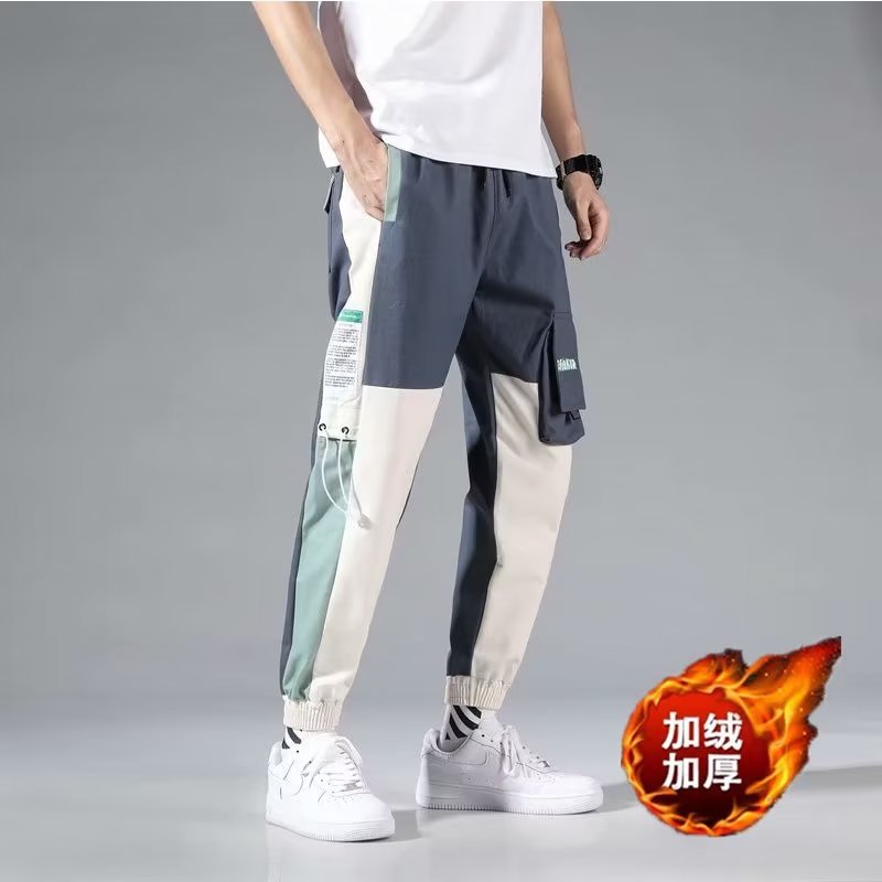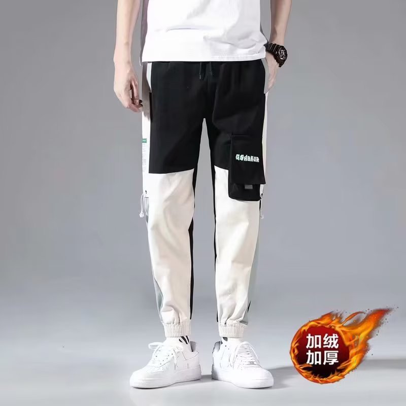 남성 기모 트렌디 캐주얼 스키니 팬츠 학생 만능 스포츠 발목 길이 바지 가을과 겨울 9 점 바지
