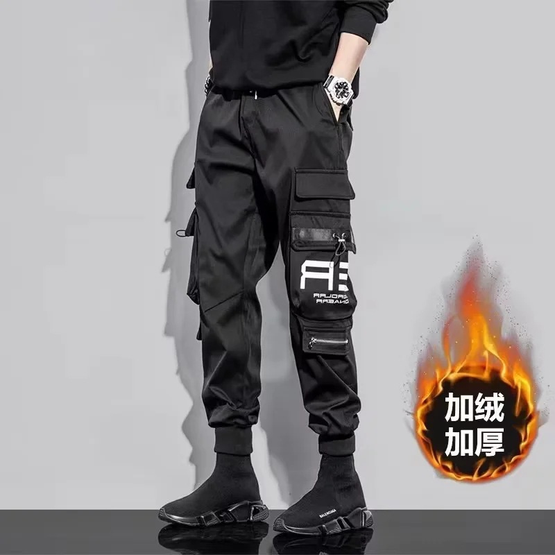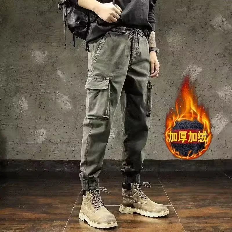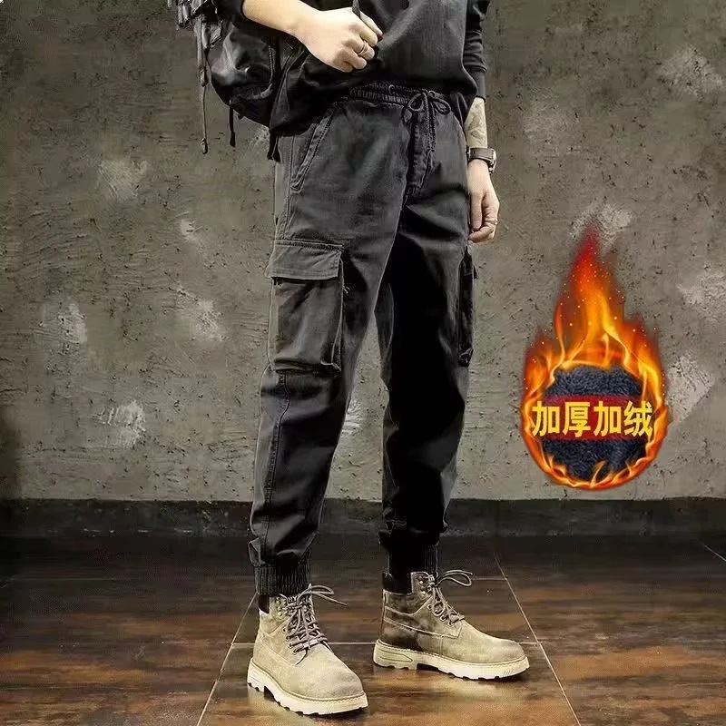 남성 기모 트렌디 캐주얼 스키니 팬츠 학생 만능 스포츠 발목 길이 바지 가을과 겨울 9 점 바지스토어 가기