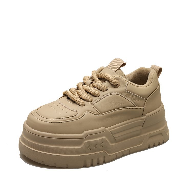 여성용 유럽산 천연가죽 화이트 슈즈, 플랫폼 두꺼운 밑창 운동화, 2025 겨울 신상 미끄럼 방지 캐주얼 브레드 슈즈스토어 가기