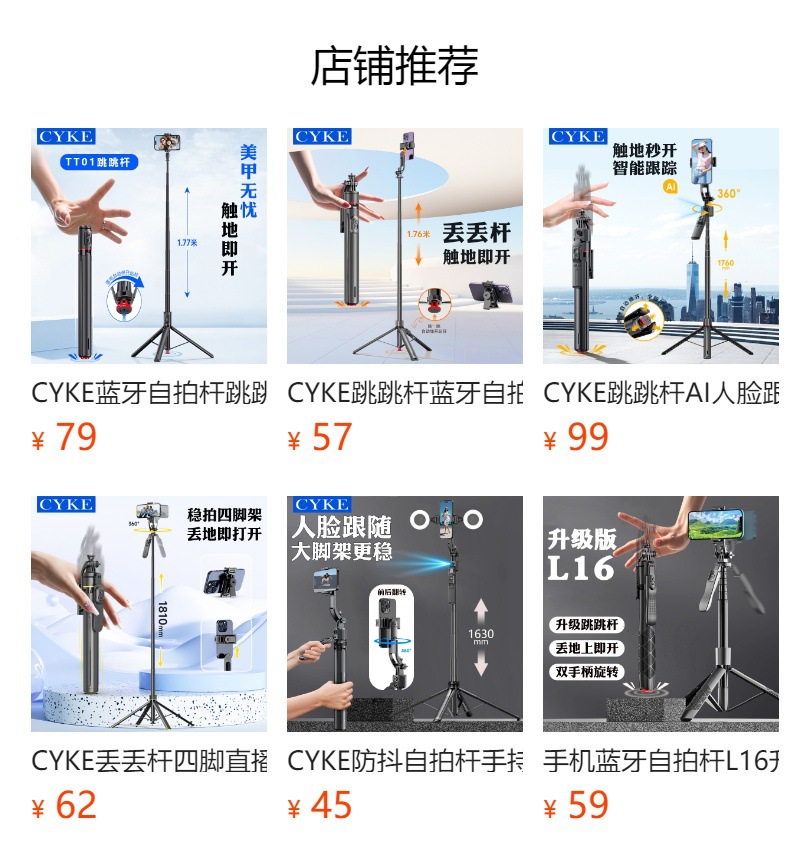 CYKE 통합 플로어 라이브 브래킷 지속 삼각대 셀카 스틱 멋진 그림자 데스크탑 휴대 전화 브래킷 알루미늄 합금스토어 가기