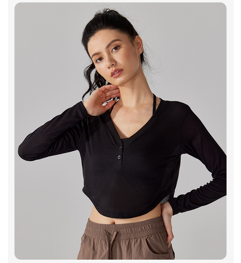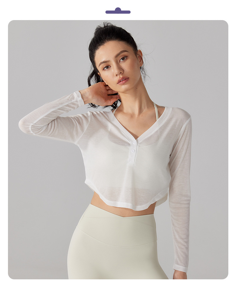 도매 봄, 여름, 가을 텐셀 요가 긴팔 느슨한 통기성 v 넥 스포츠 커버 업 여성 속건성 러닝 피트니스 의류