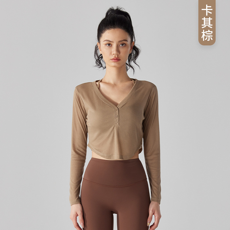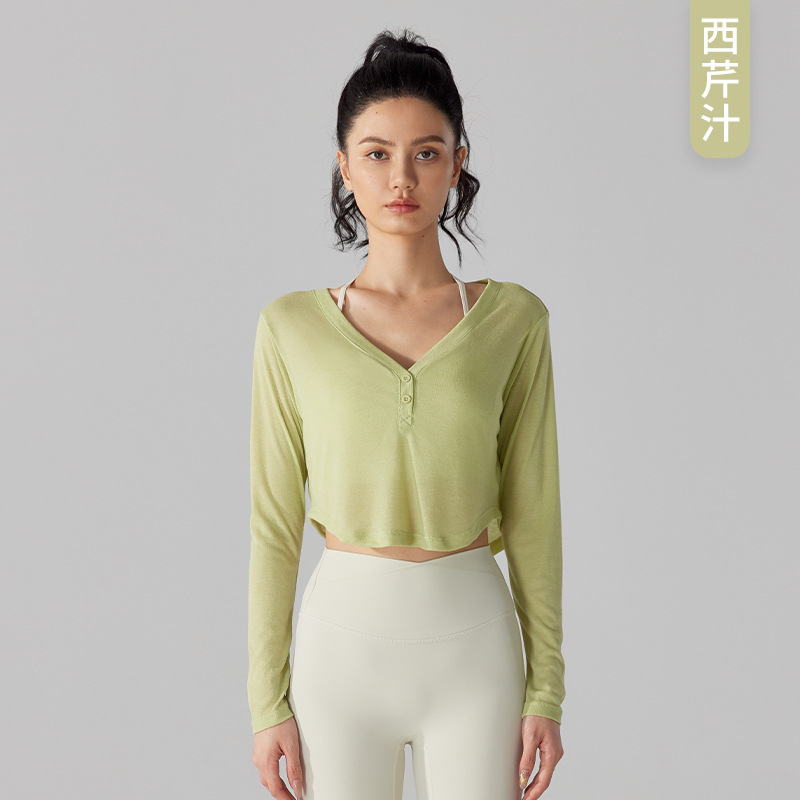 도매 봄, 여름, 가을 텐셀 요가 긴팔 느슨한 통기성 v 넥 스포츠 커버 업 여성 속건성 러닝 피트니스 의류스토어 가기