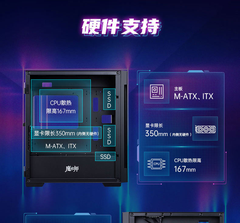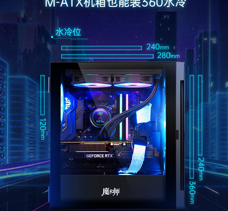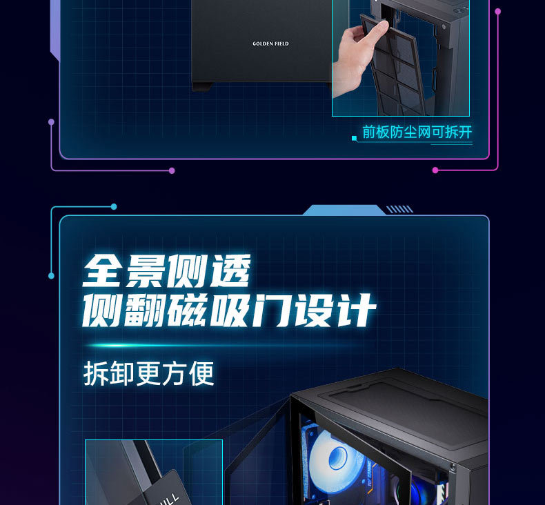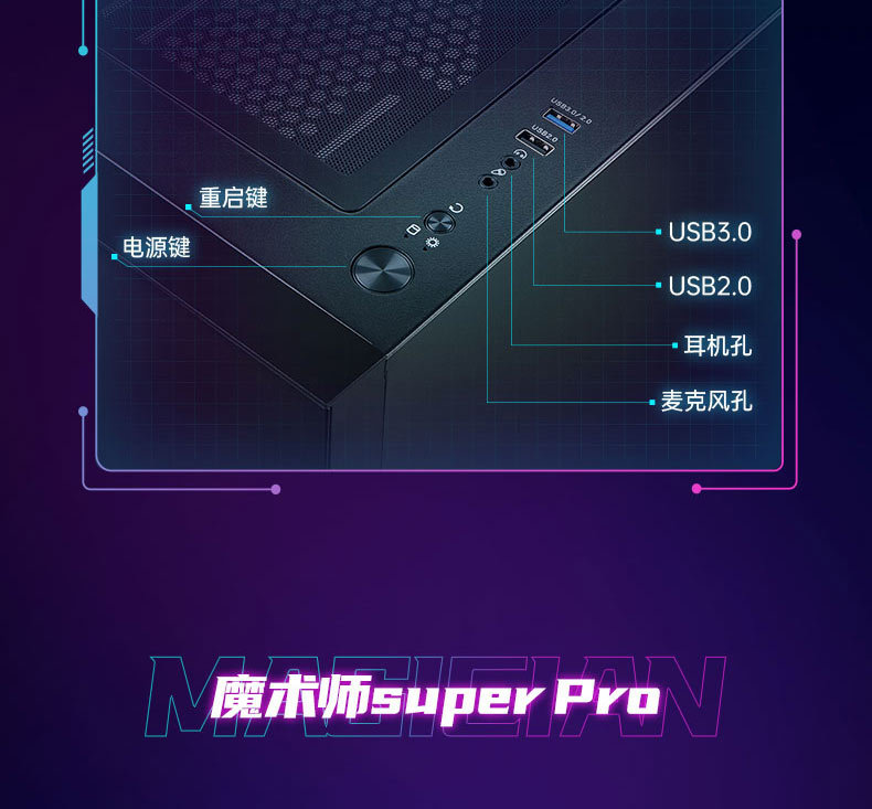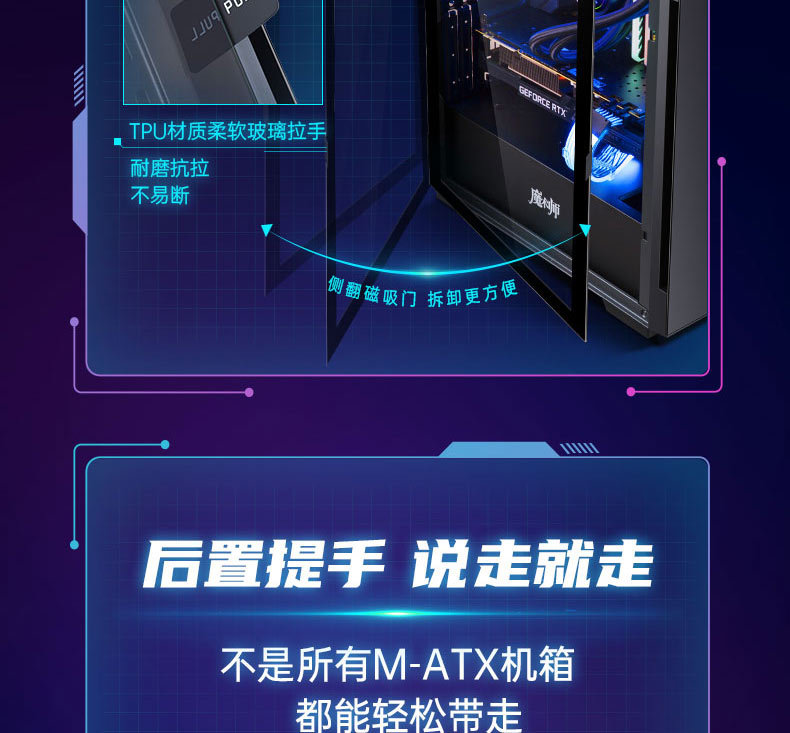 Jinhetian 마술사 슈퍼 프로 데스크탑 케이스 전면 투명 플립 커버 지원 M-ATX 자기 매력 전면 패널