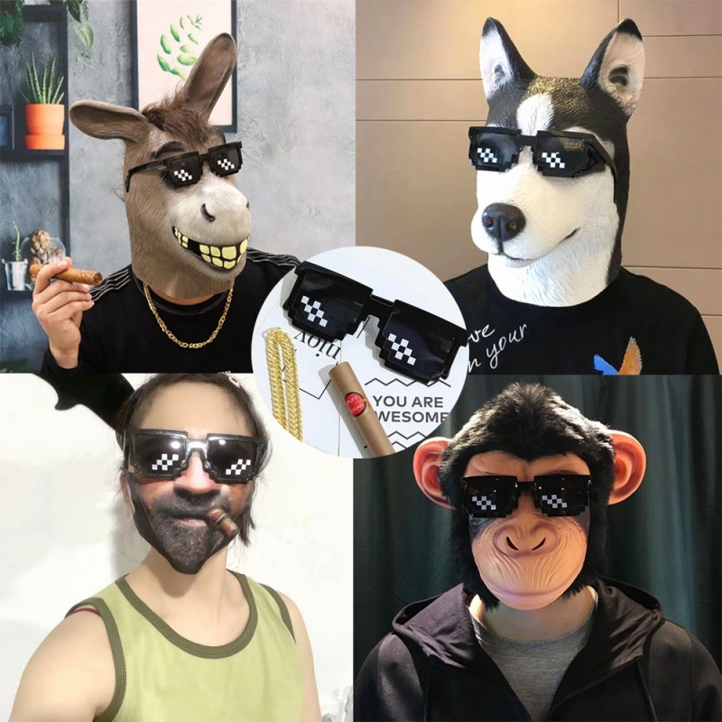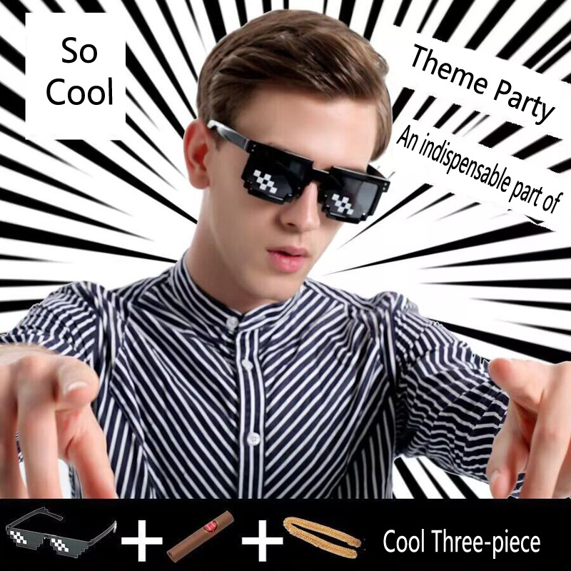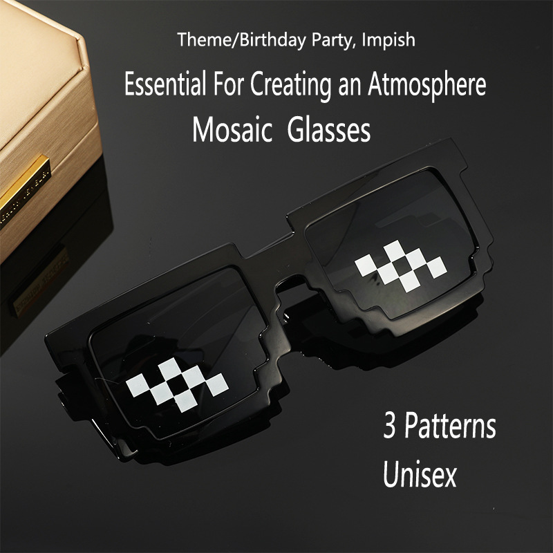 고급스러운 남녀 모자이크 안경, 2차원 선글라스, 패셔너블하고 개성 넘치는 멋진 장식용 픽셀 선글라스 액세서리