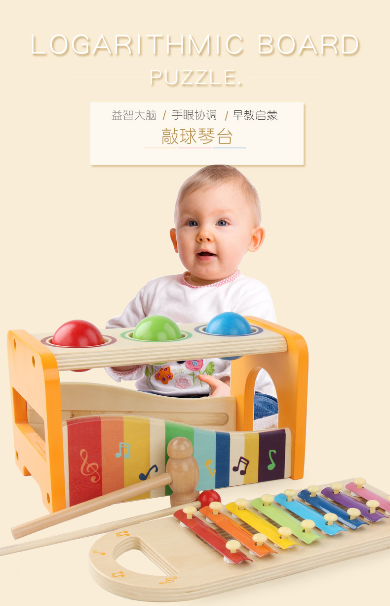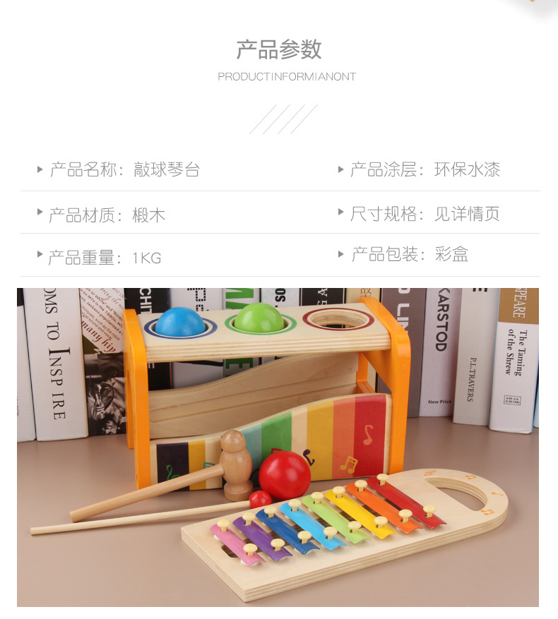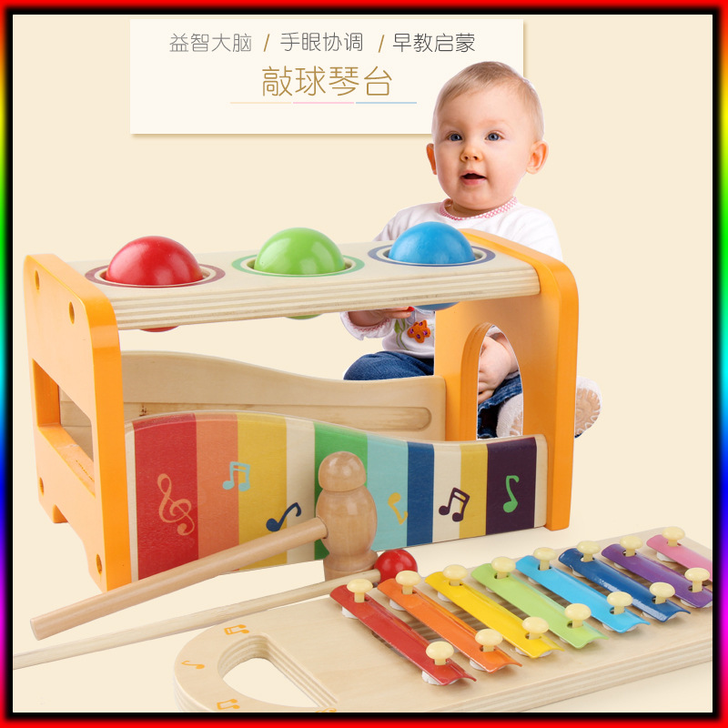 몬테소리 필링 테이블 태핑 장난감 아기 운동 손 눈 조정 조기 교육 드래그 노킹 볼 피아노 테이블 도매스토어 가기