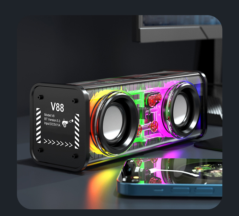 새로운 V88 블루투스 스피커 무선 블루투스 스피커 크리스탈 메카 서브 우퍼 데스크탑 스피커 선물 스피커스토어 가기